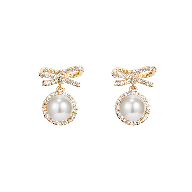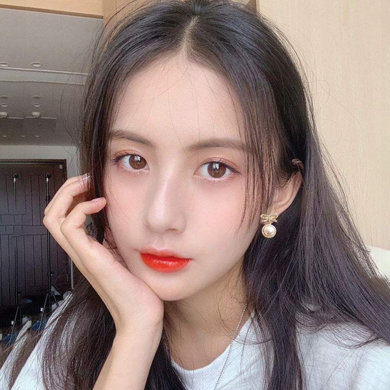 Bow Pearl Simple Micro Stud Earrings