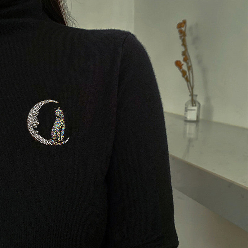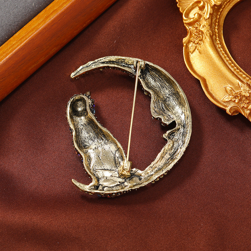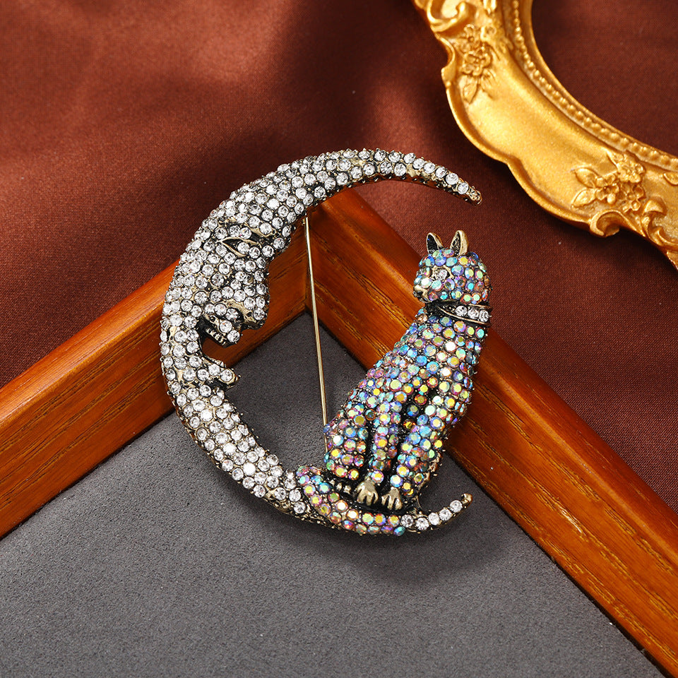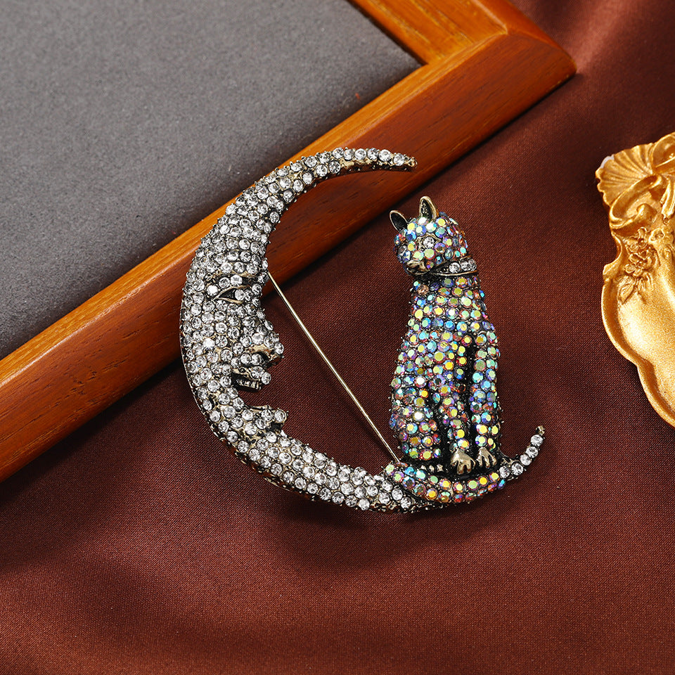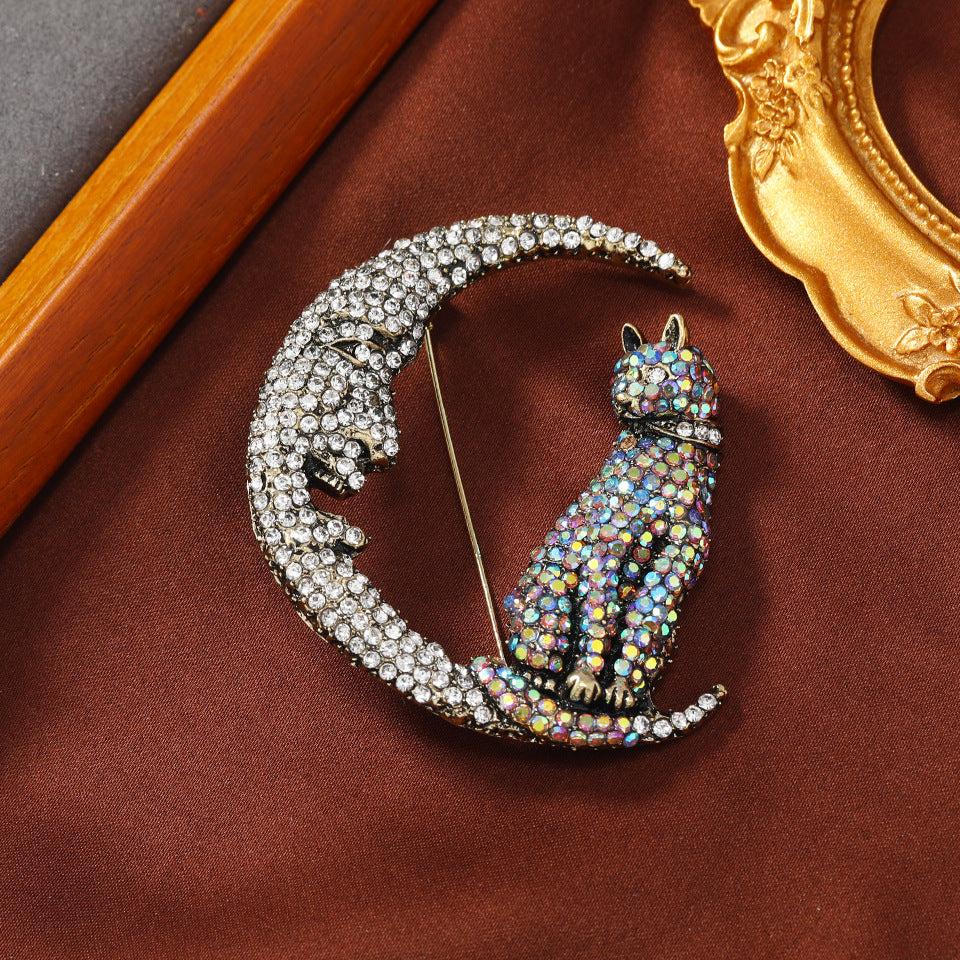 Creative Retro Full Diamond Heavy Industry Moon Brooch Female