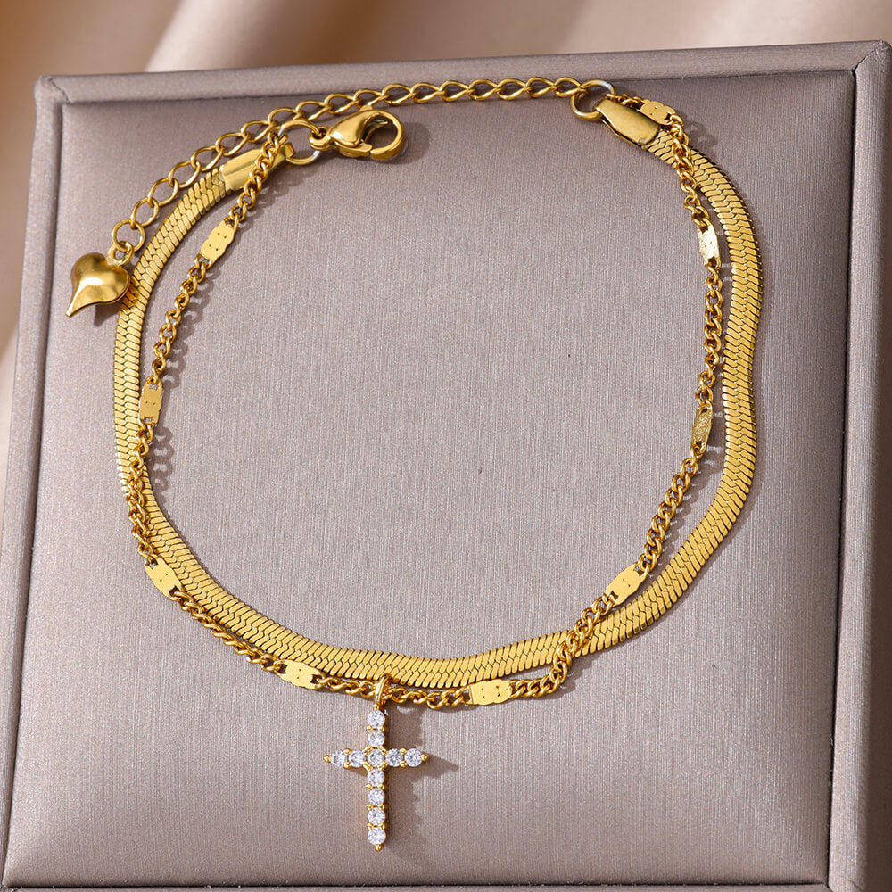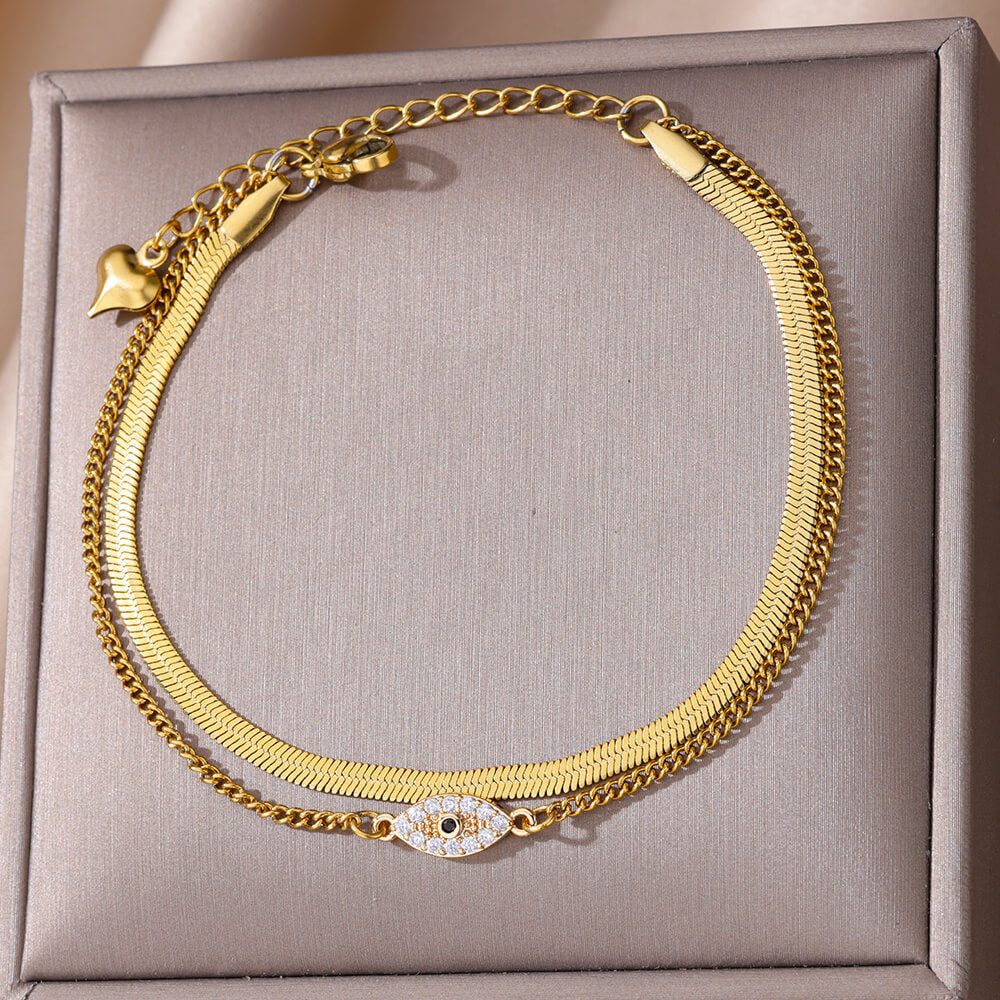 Fashion Double Layer Snake Bone Anklet Elegant Beach Stainless Steel