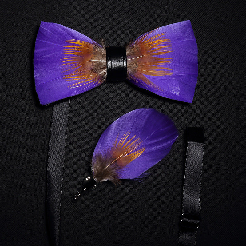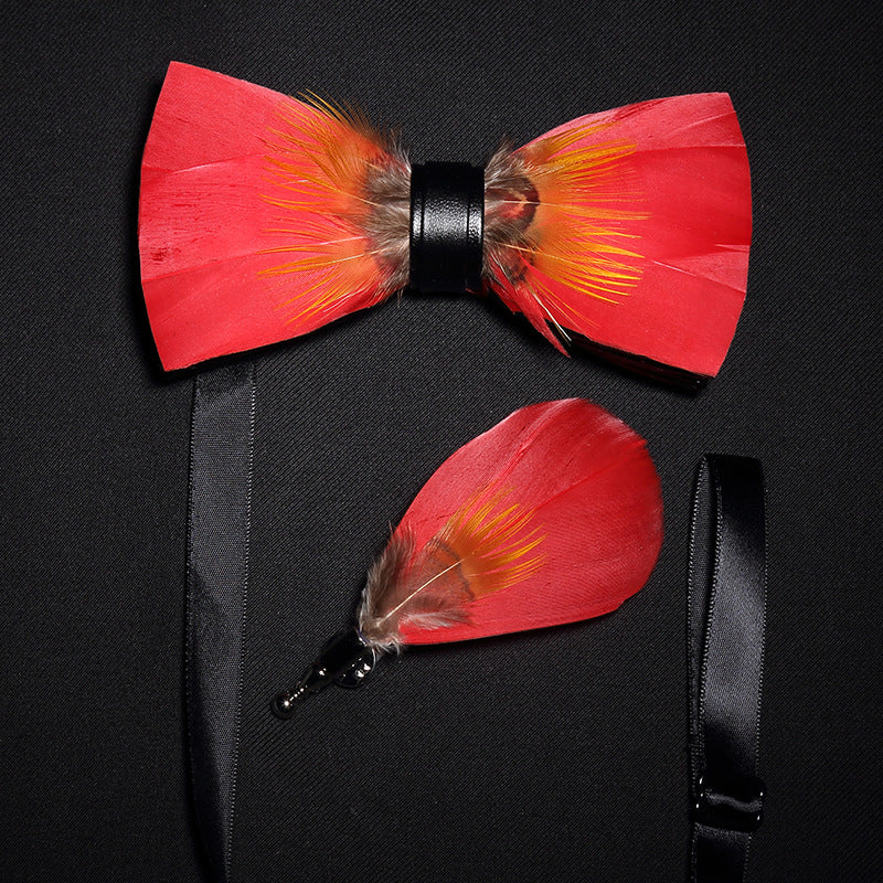 Fashion Feather Bow Tie Groomsman Brooch Collar Flower Pin