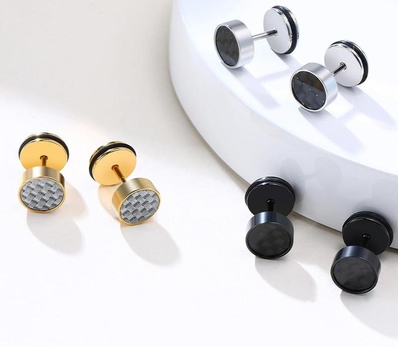 Cycolinks Stainless Steel Carbon Fiber Stud Earrings