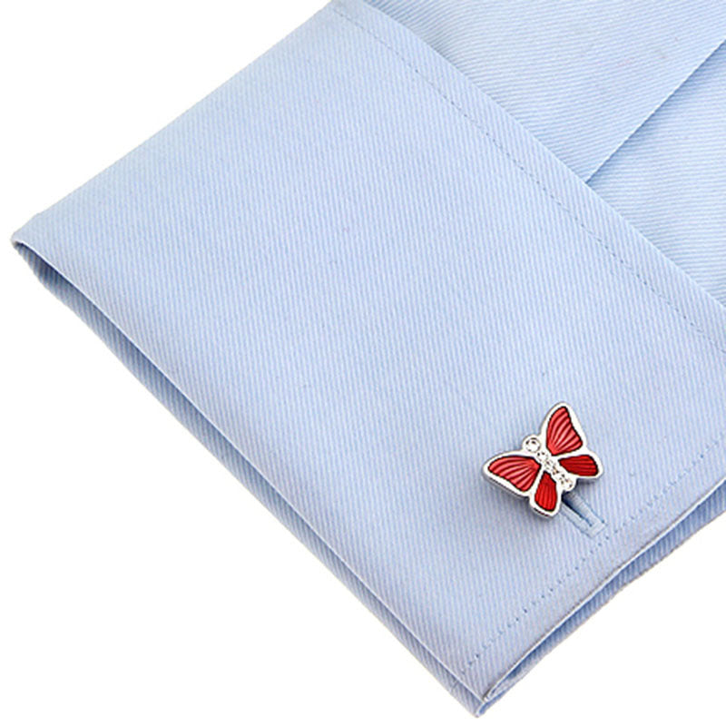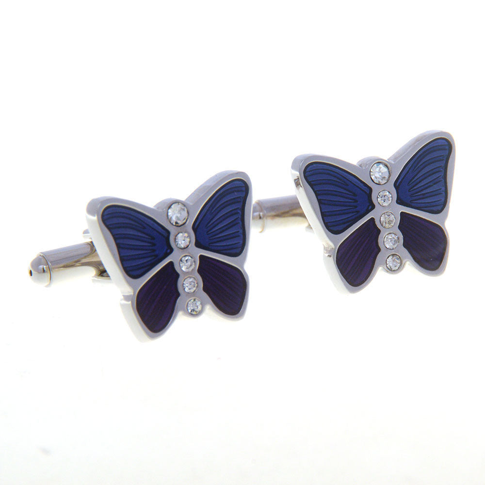 French Shirt Sleeve Button With Butterfly Enamel And Diamond