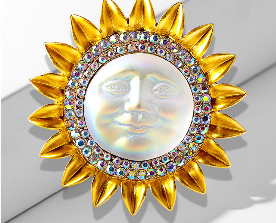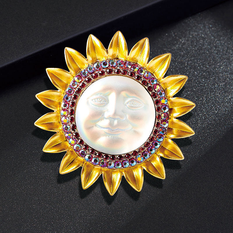 Heavy Industry Sun Smiley Face Brooch Alloy Baroque Clothing Accessories