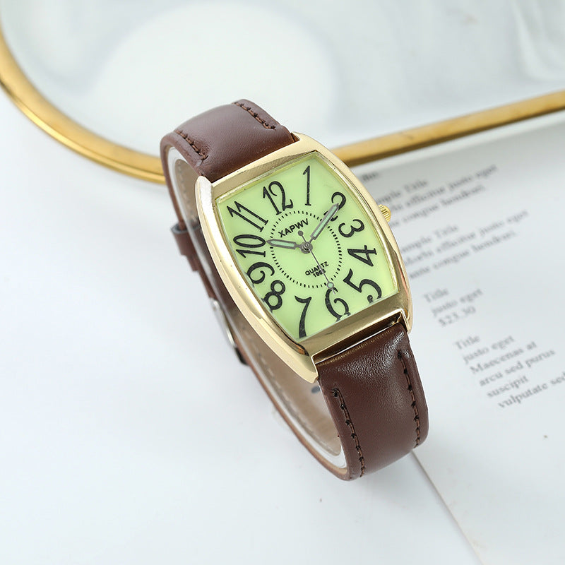 Luminous Wine Barrel Square Couple Watch Fashion
