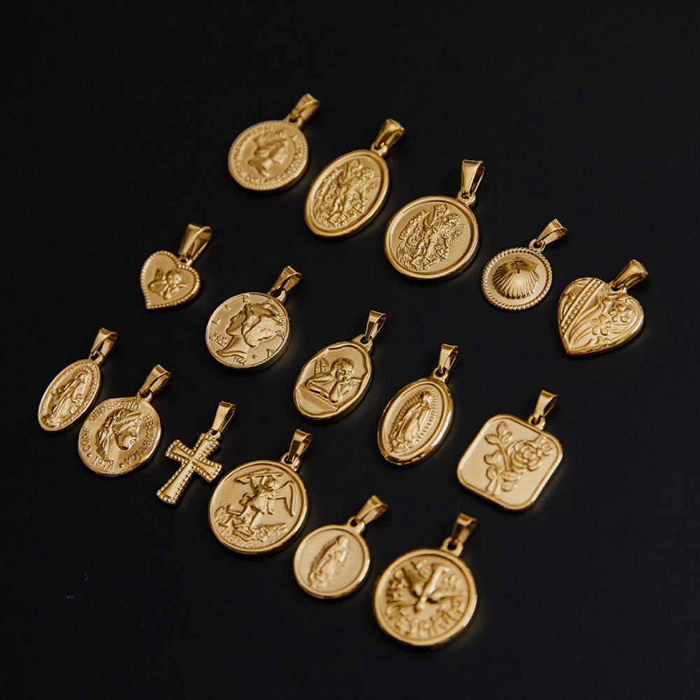 Portrait Coin Cross Peach Heart Angel Retro Pendant