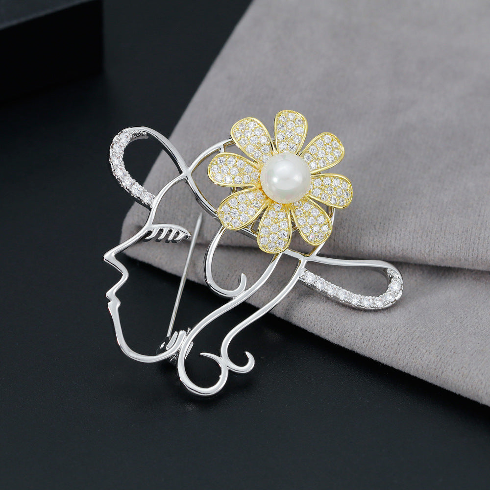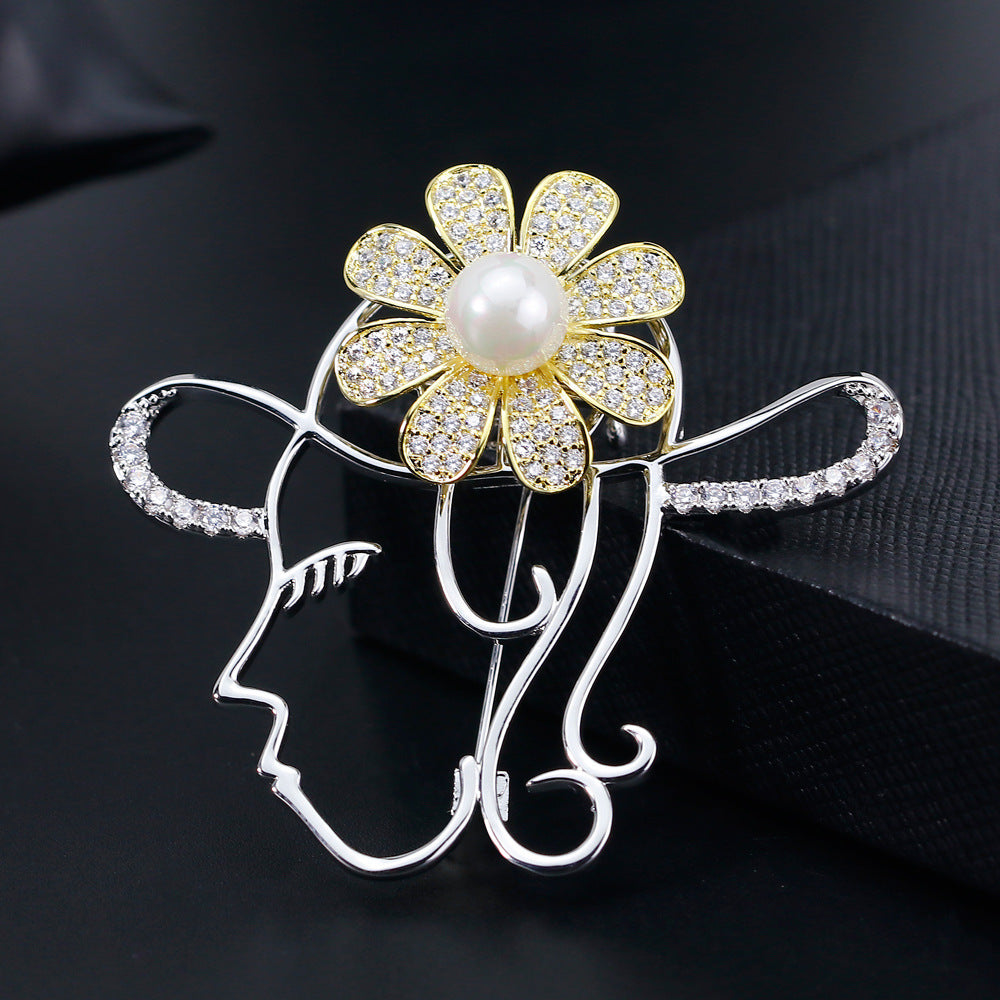 Rotating Portrait Brooch Pin Coat Sweater Accessories