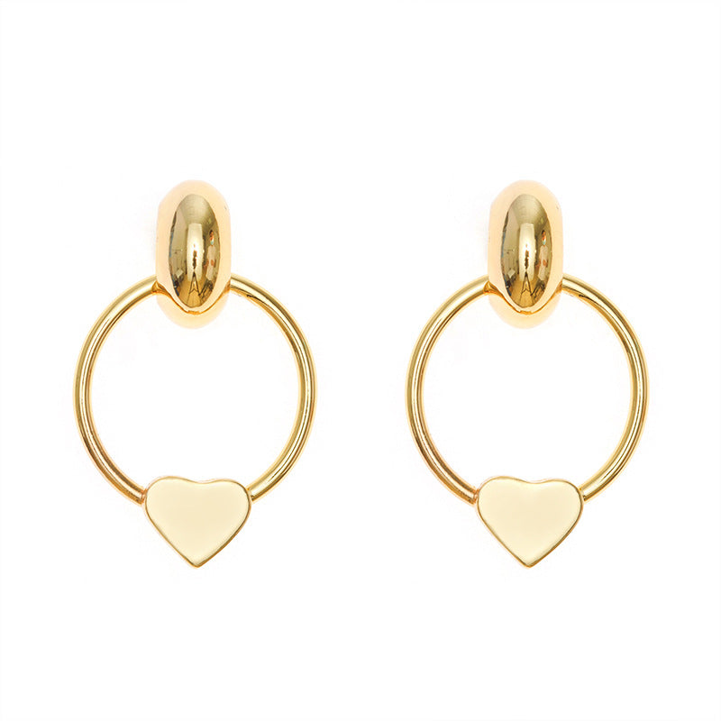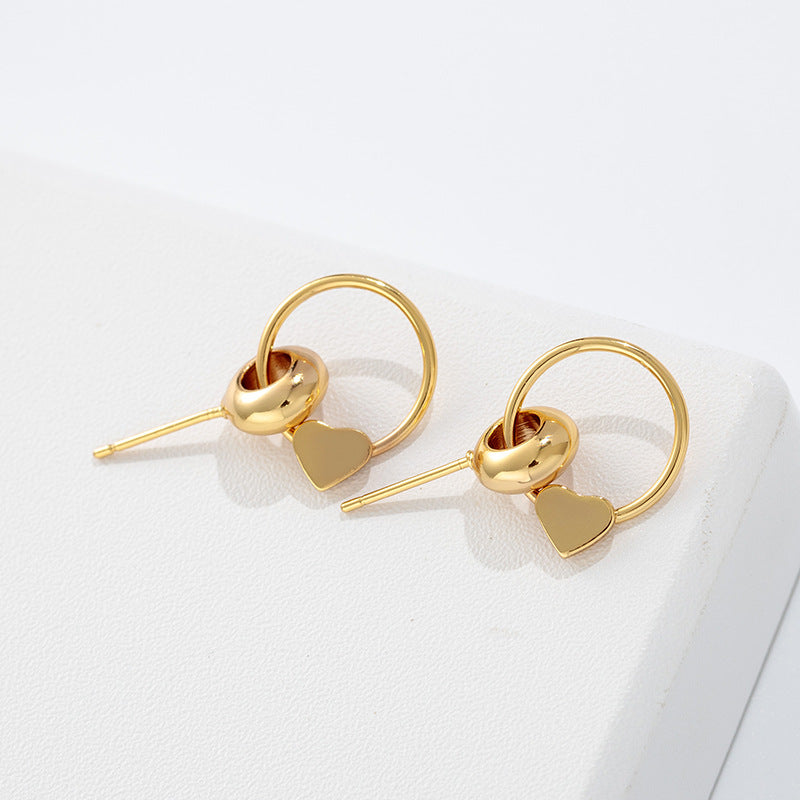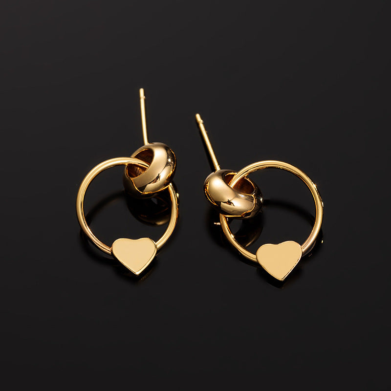 Simple Earrings Real Gold Plated Hollow Heart-Shaped Earrings Women