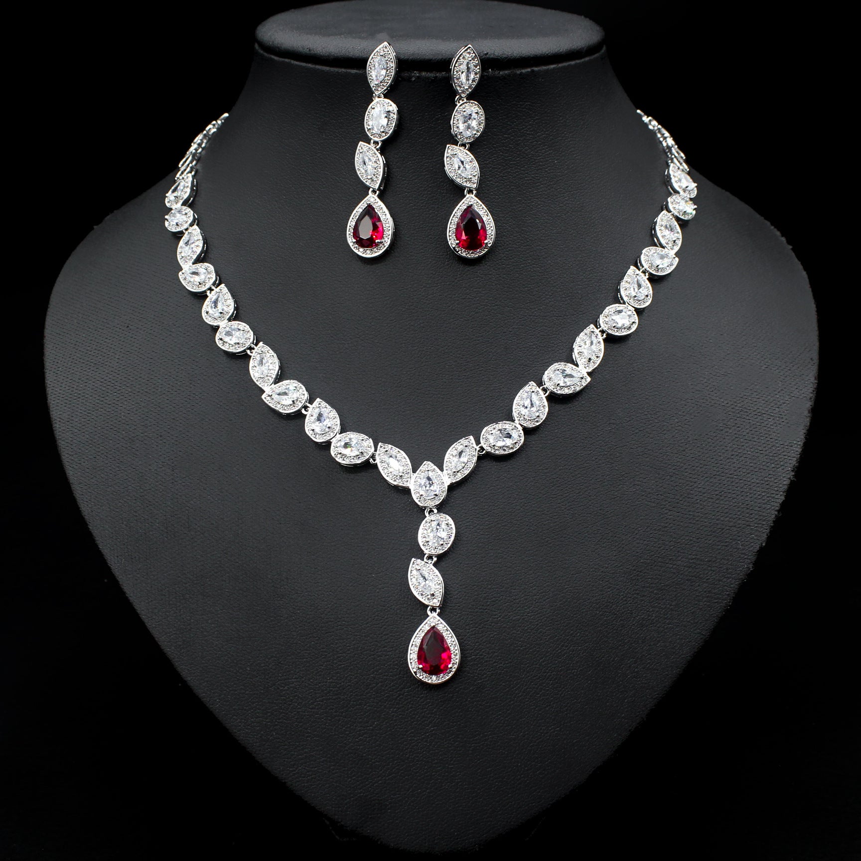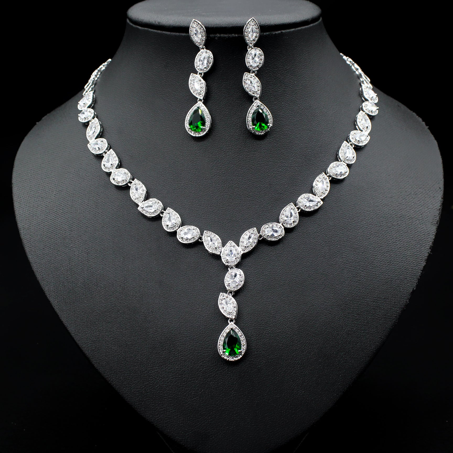 Colorful Zircon Necklace Earrings Clavicle Chain Female Noble Luxury Wedding Dress Three-Piece Set