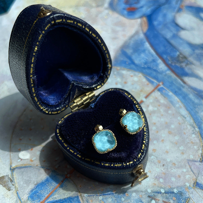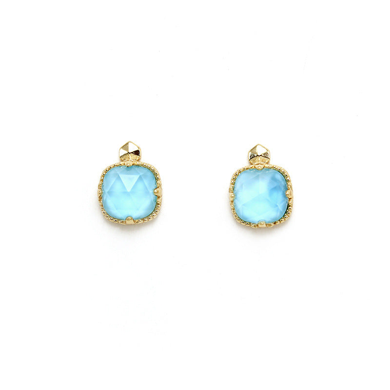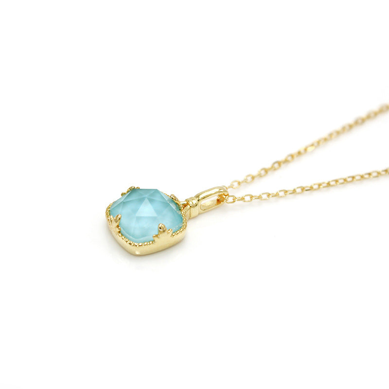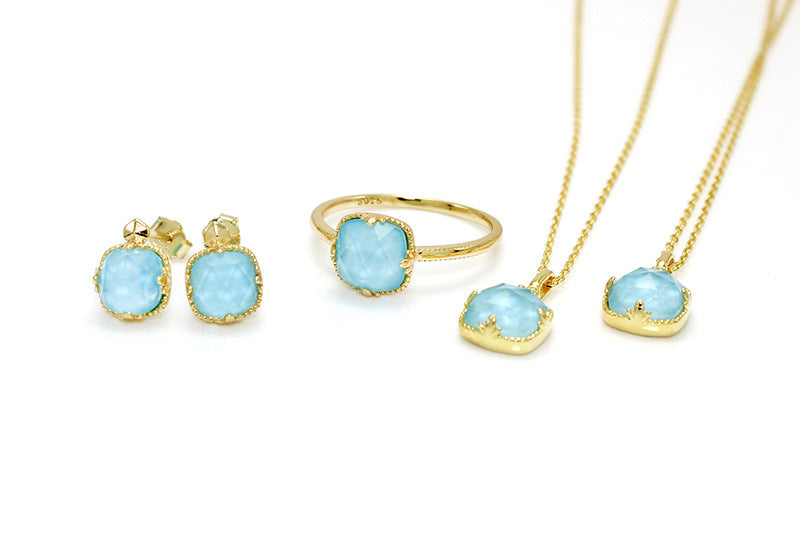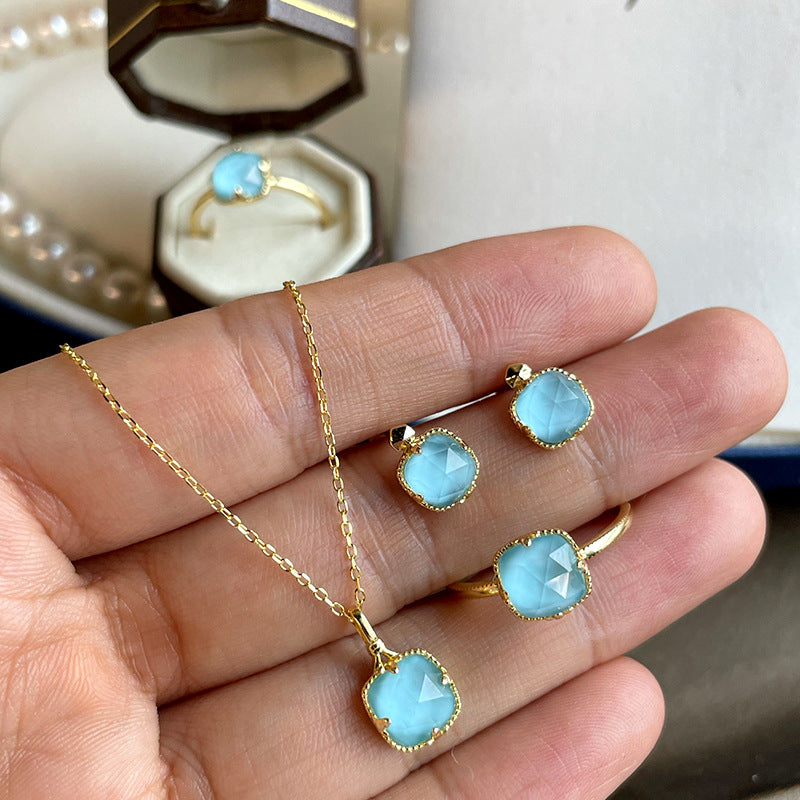 Square Turquoise Quartz Cut S925 Silver Gold-Plated Necklace Earring Ring Set