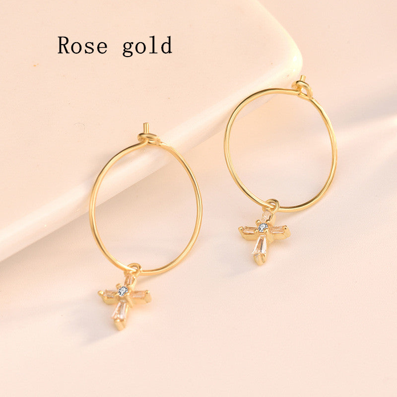 Cold Wind Personality Net Celebrity Creative Diamond Cross Earrings