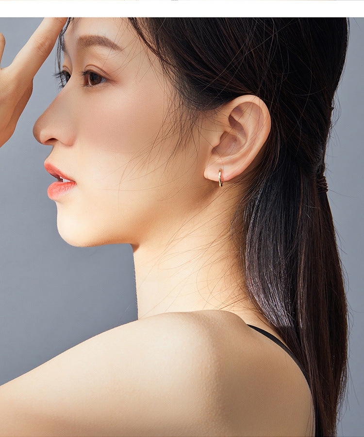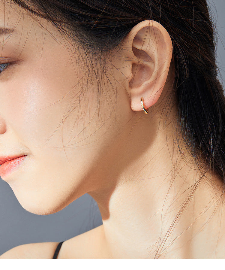 S925 Sterling Silver Earrings Women Fashion Real Gold Plated Temperament European And American Gold Simple Earrings Sce808
