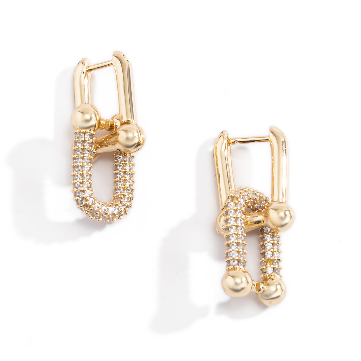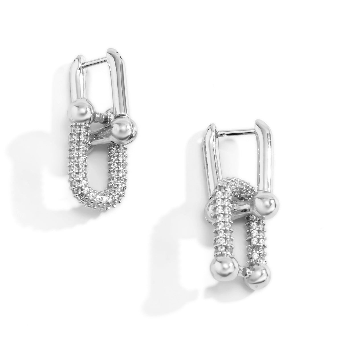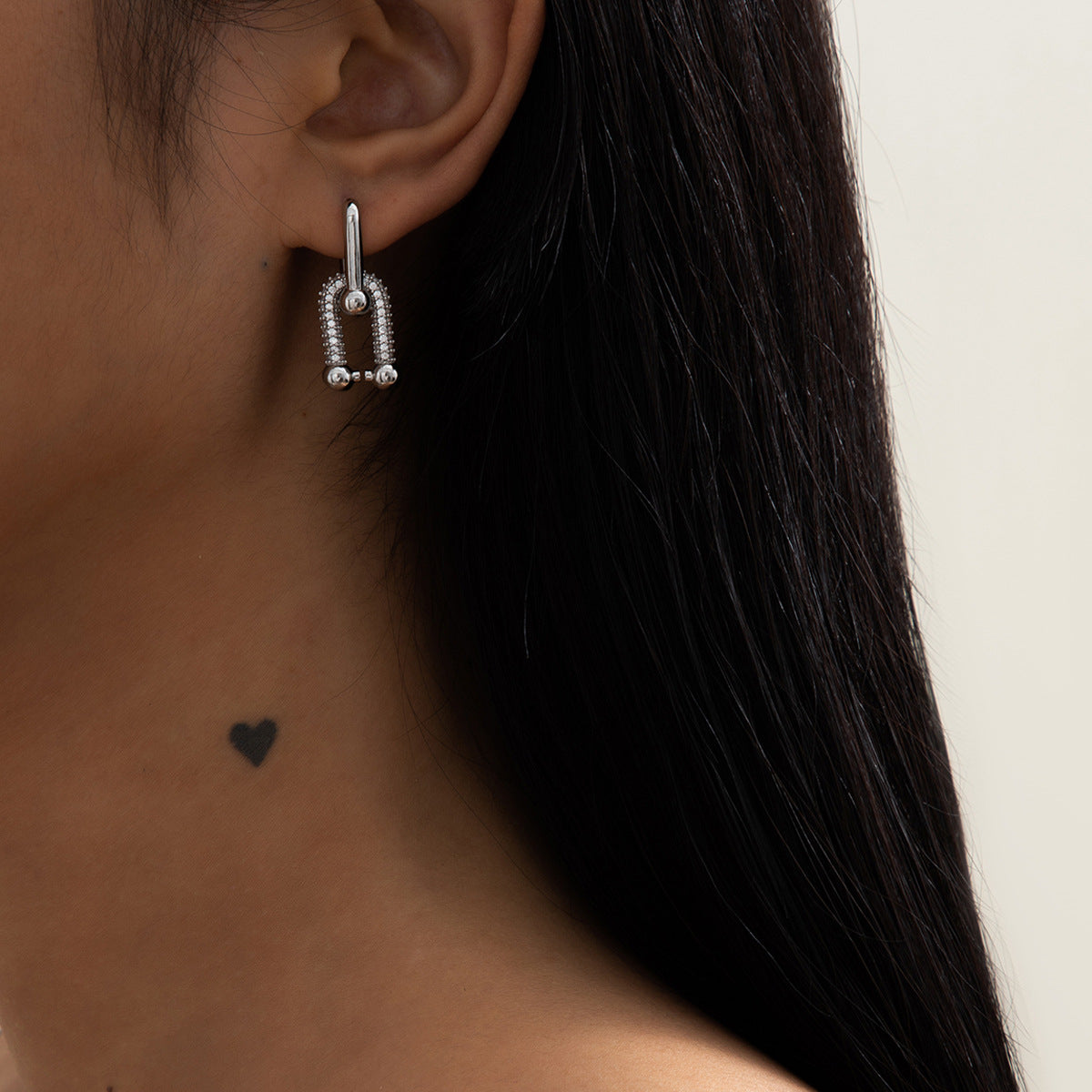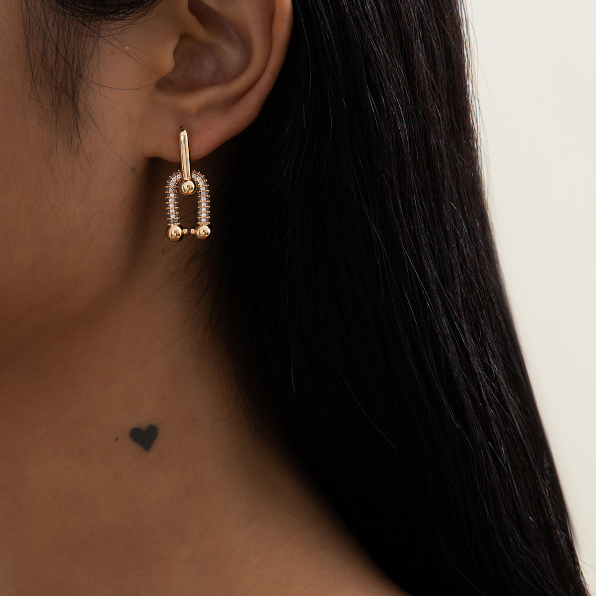 Hollow Alloy Earrings, Personalized Exaggerated Diamond U-Shaped Buckle Temperament Earrings