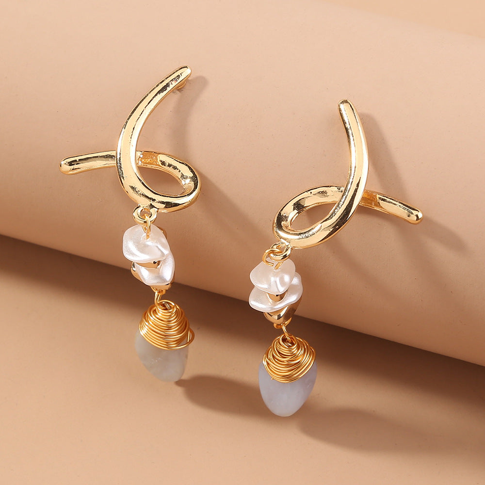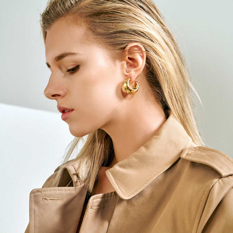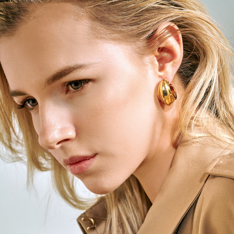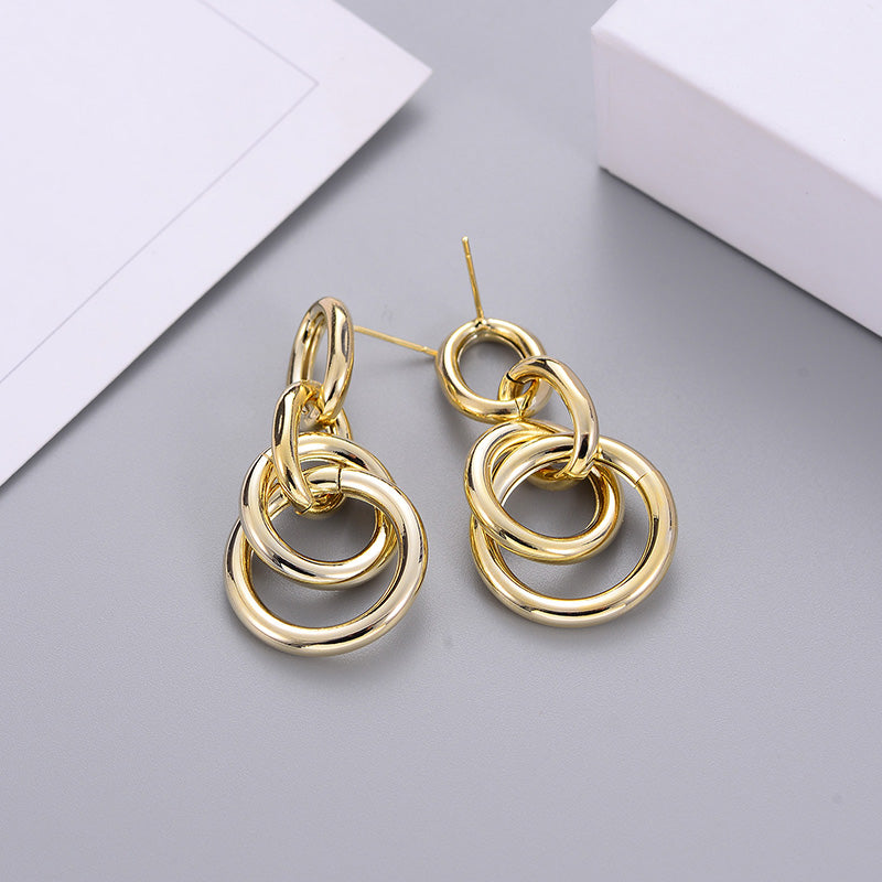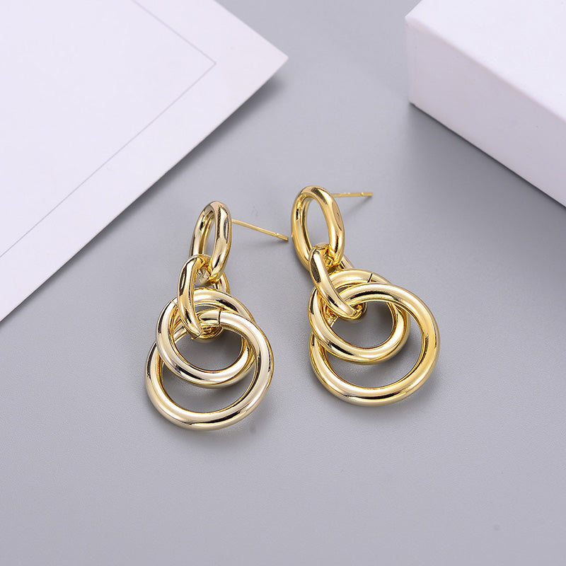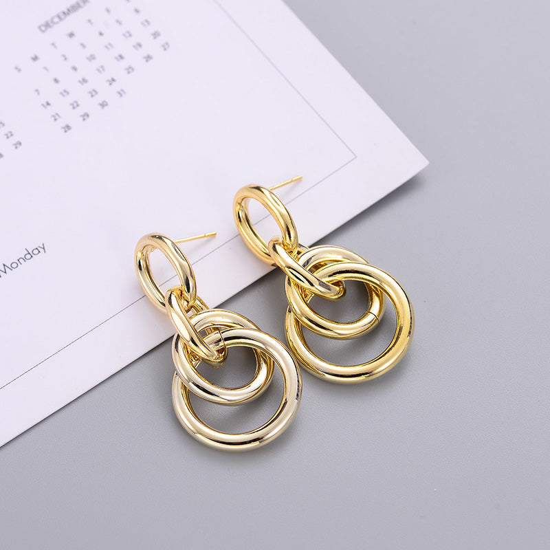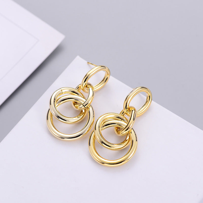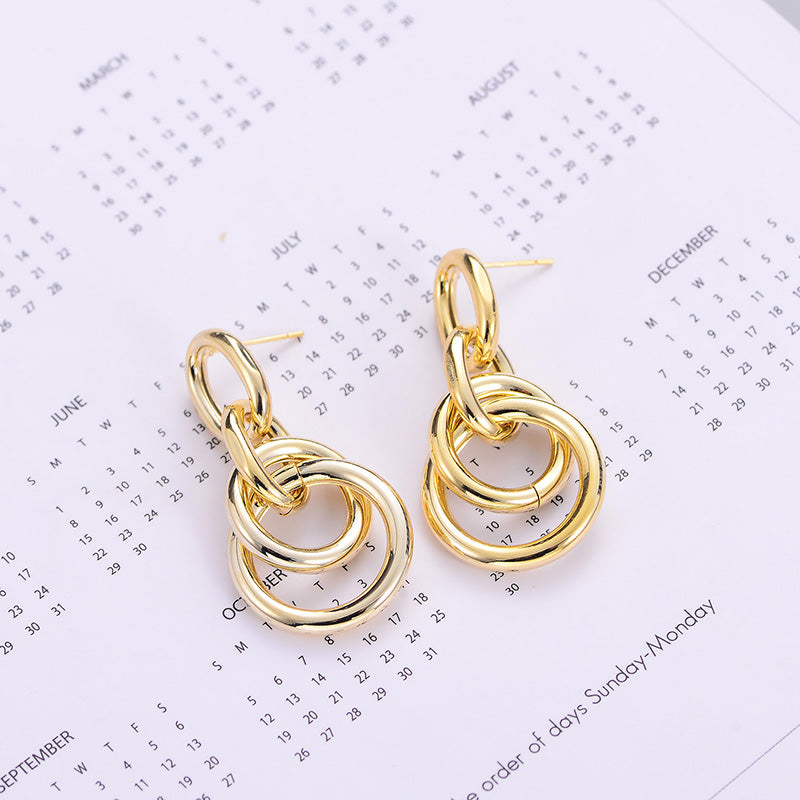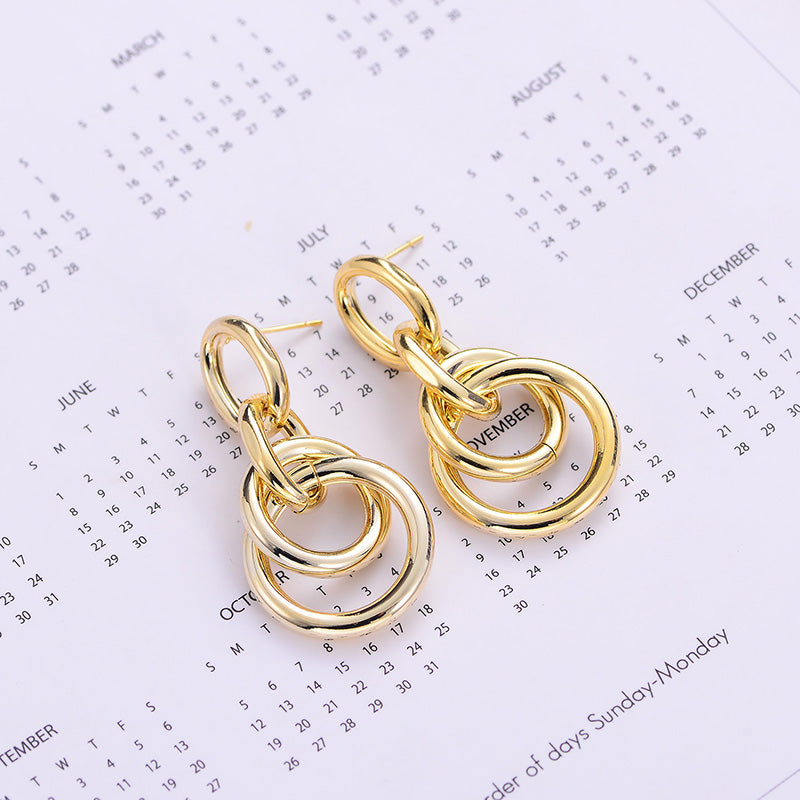 European And American Cross-Border Retro Simple Cold Wind Golden Earrings Female Temperament Wild Earrings Metal Earrings Tide