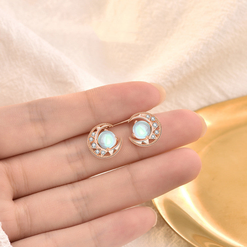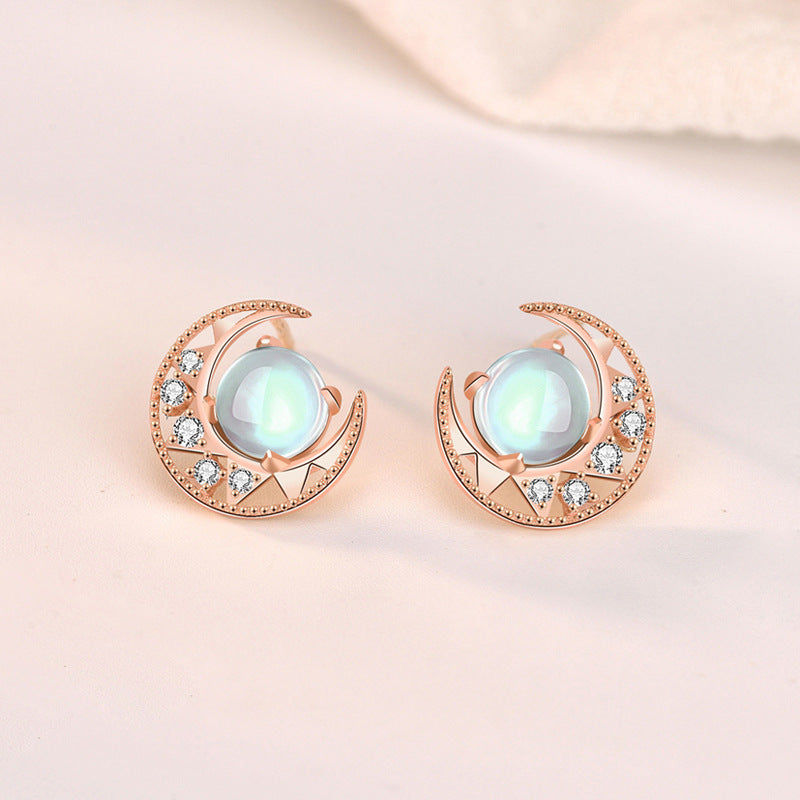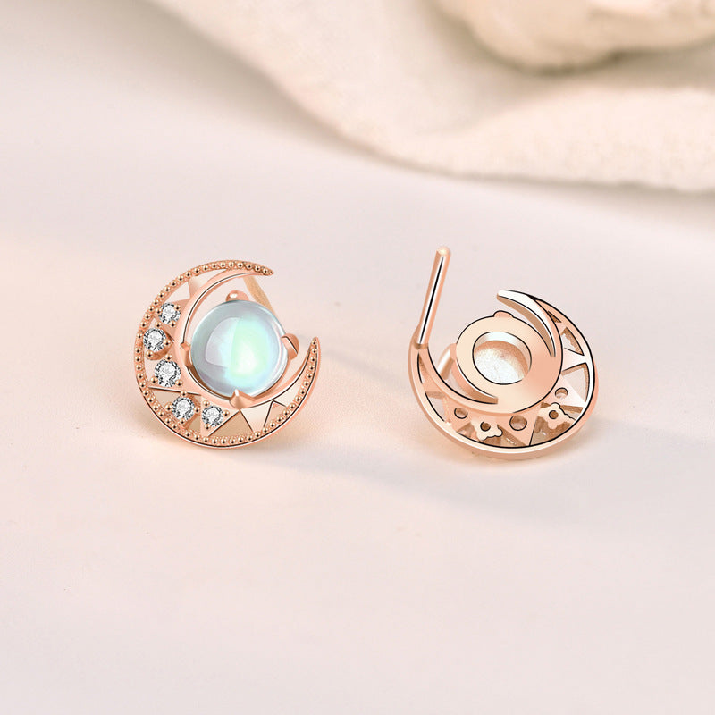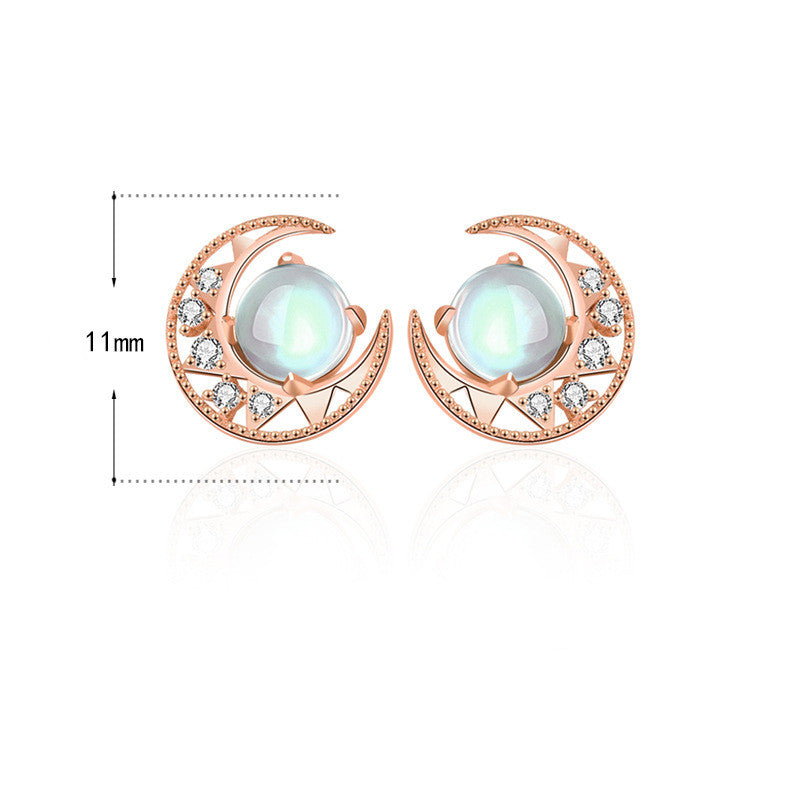 Sterling Silver Moonstone Star And Moon Stud Earrings