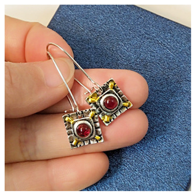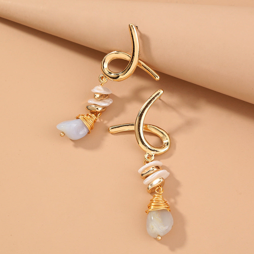Bi Heart Earrings Female Small Jelly Blue Natural Stone Earrings Antique Wild Creative Earrings