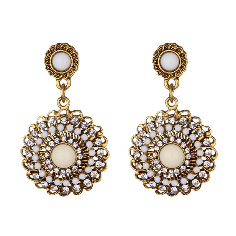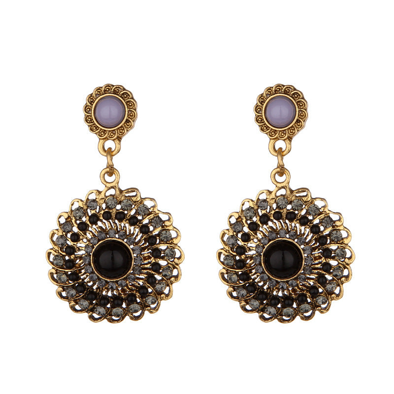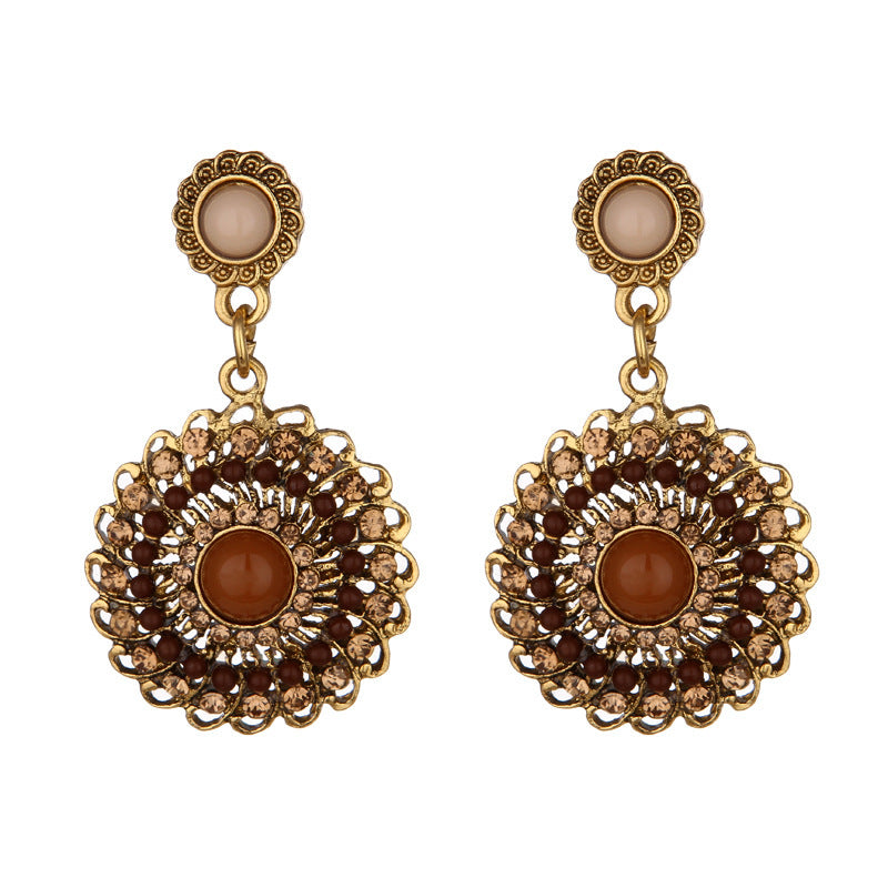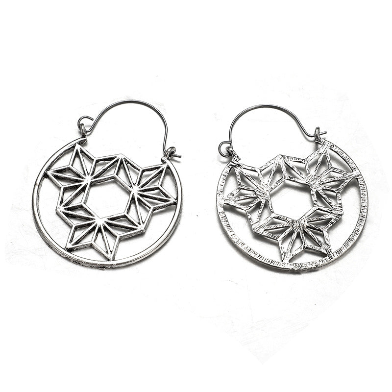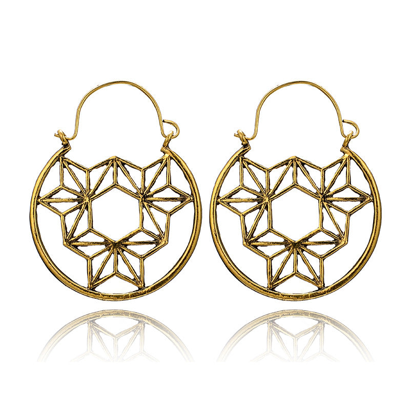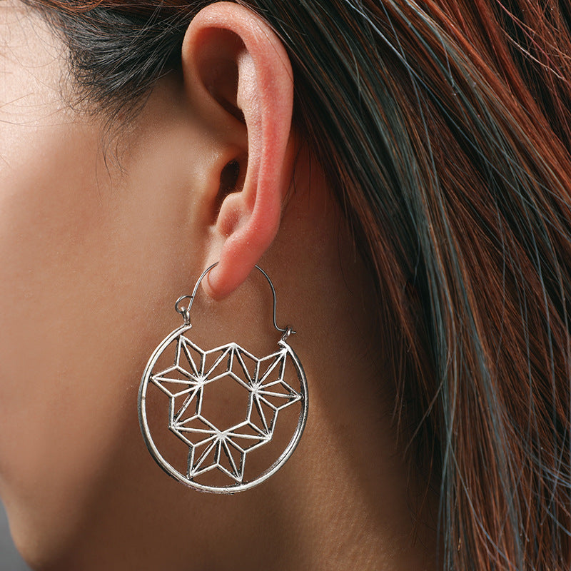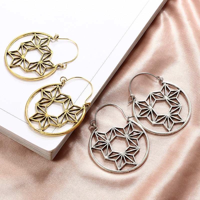 Retro Flower Triangle Geometric Round Hexagonal Earrings