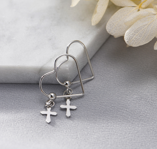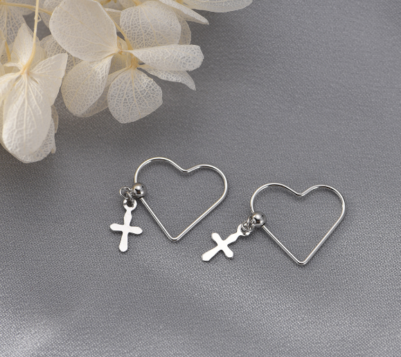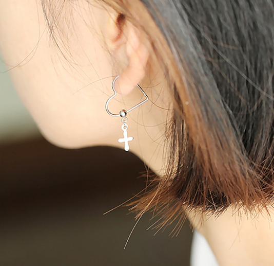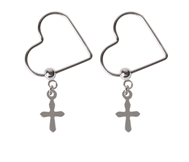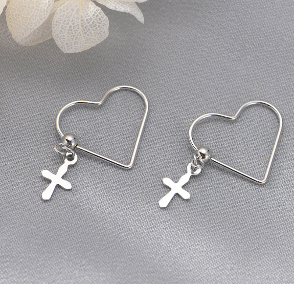 Cross Earrings Heart 925 Pure Sterling Silver Fashion Trendy Design Simple Wild Earrings For Women Charms Jewelry Gift