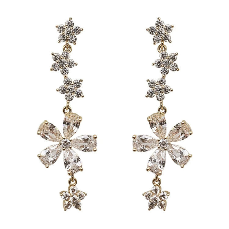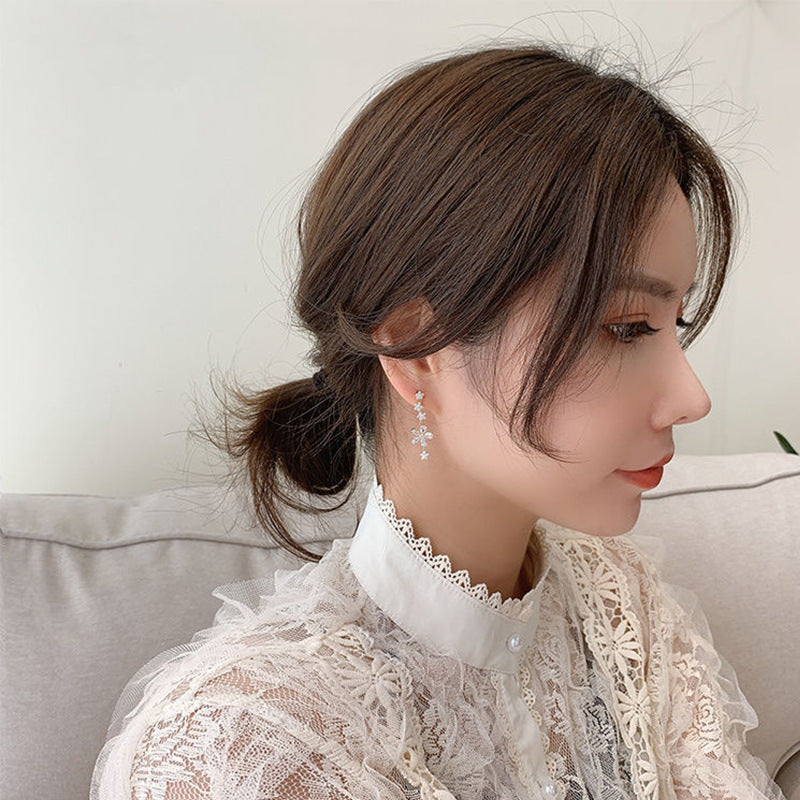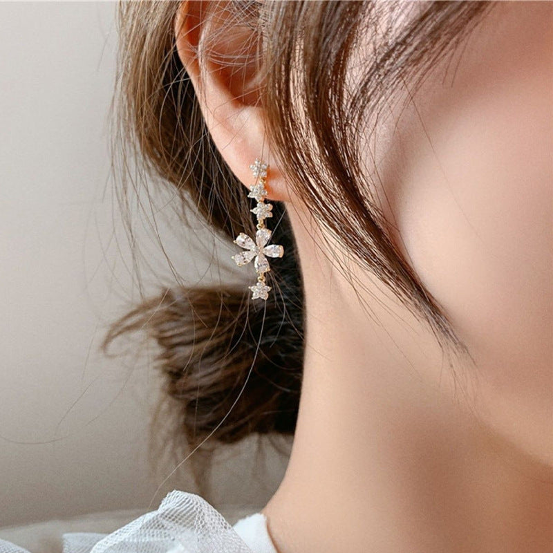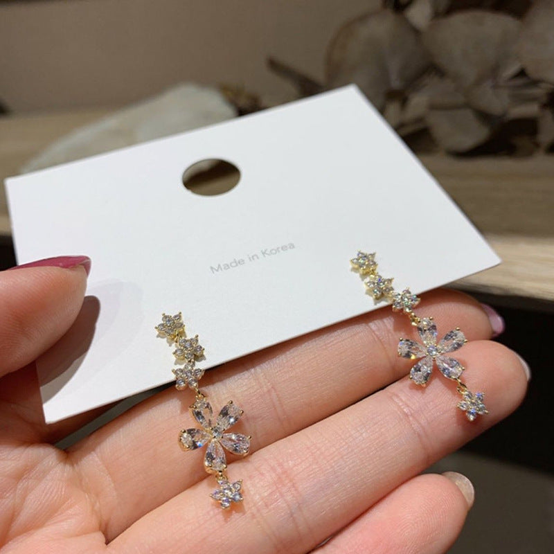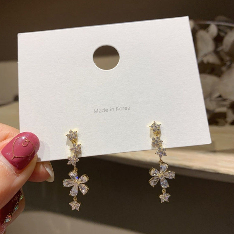 Korea Super Fairy Sweet 925 Silver Needle Rhinestone Flower Earrings Temperament Simple Long Earrings Lady Ear Jewelry Female
