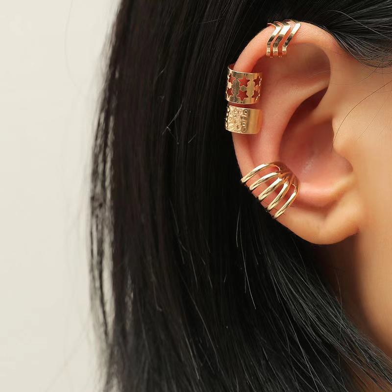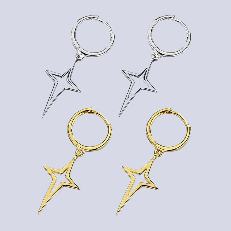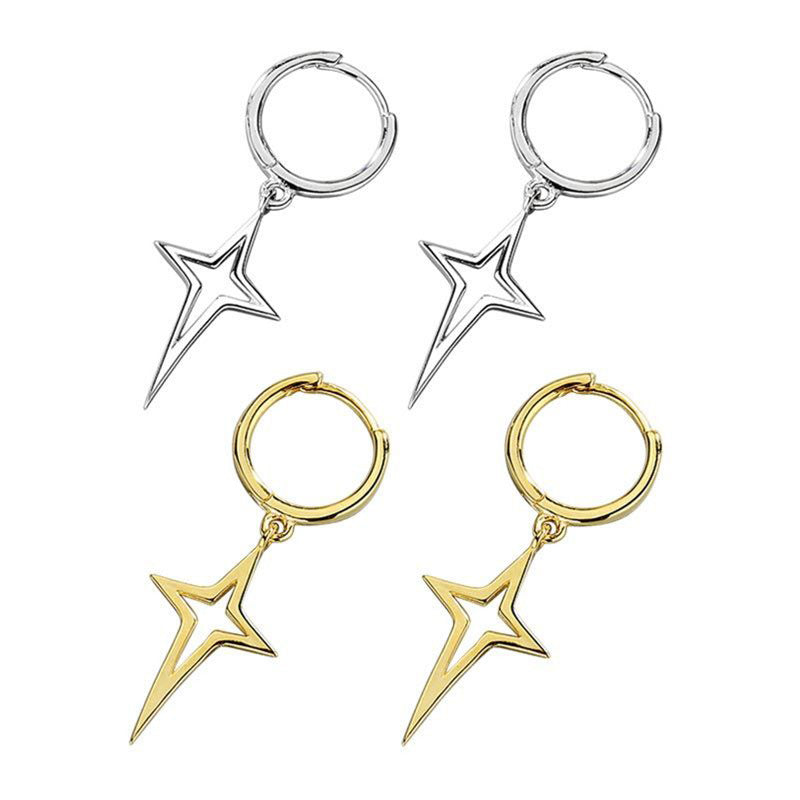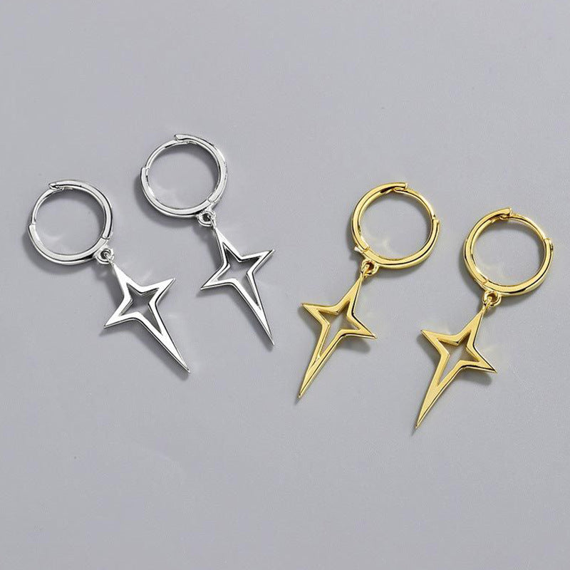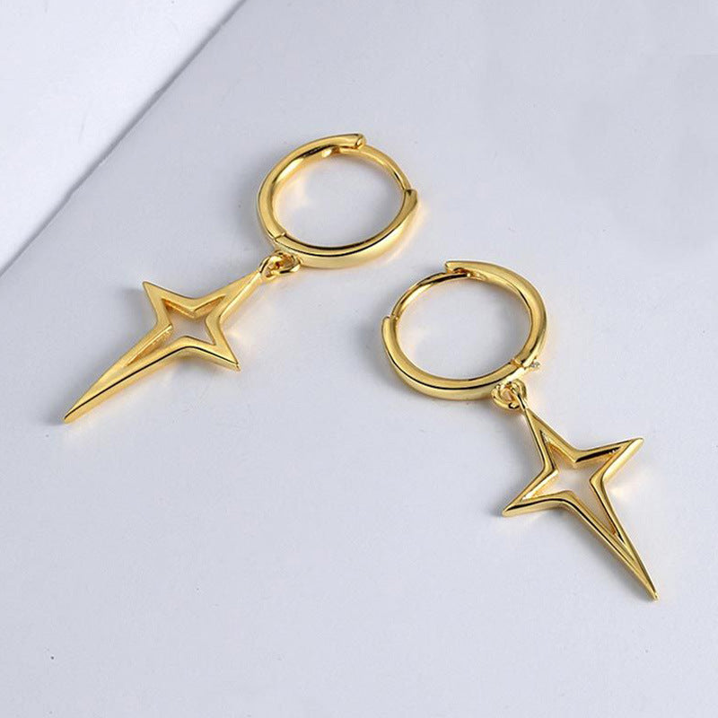 Men's Earrings Copper Plating 18K Real Gold Lucky Four-Star Earrings
