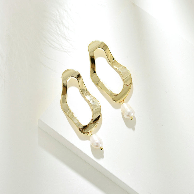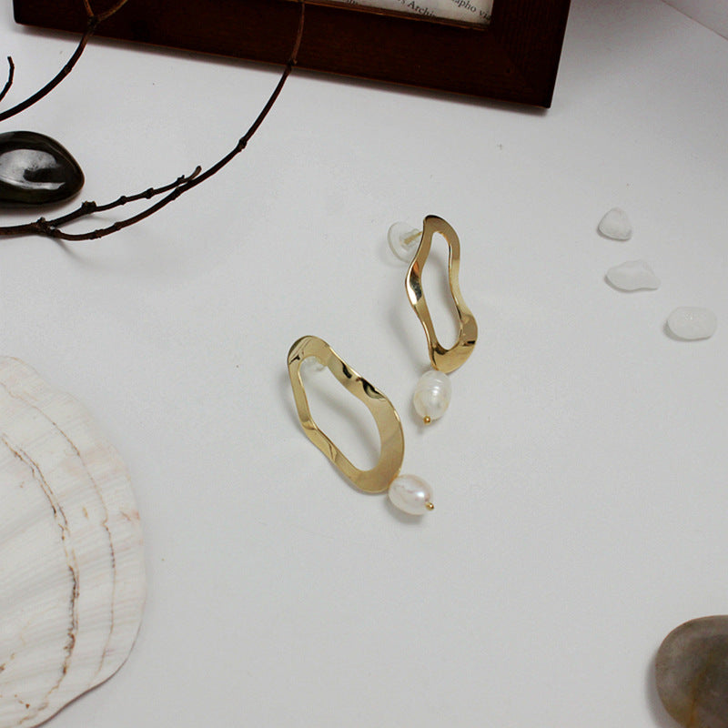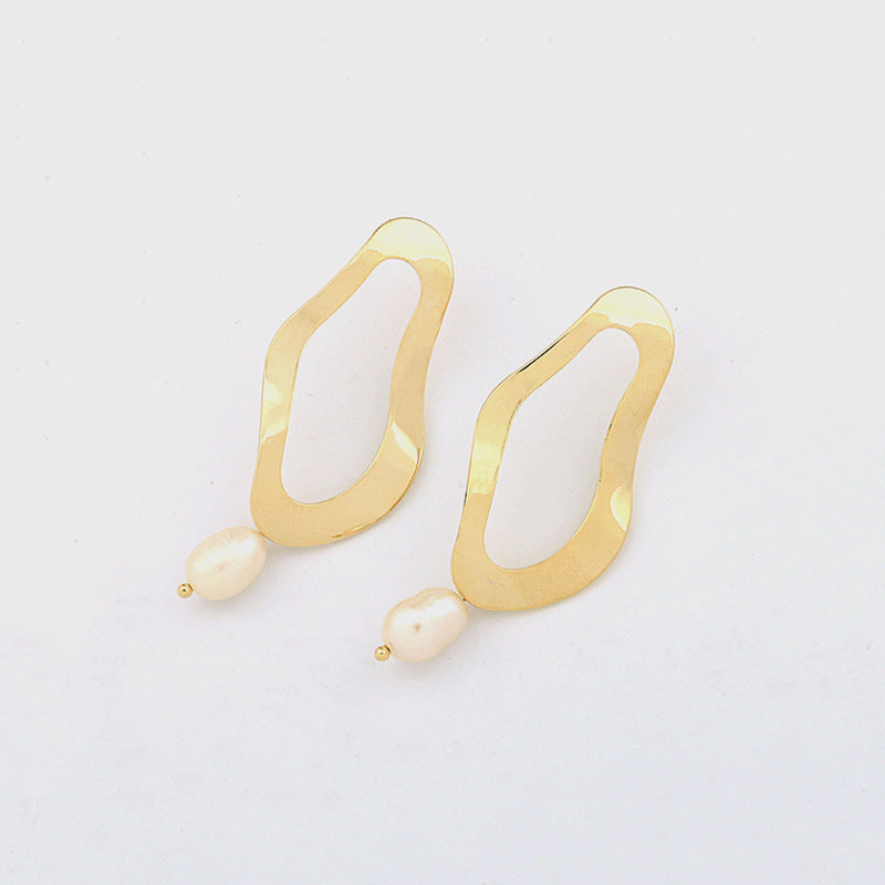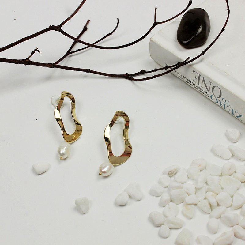 European And American Earrings Simple Female Pearl Inlaid Brick Earrings