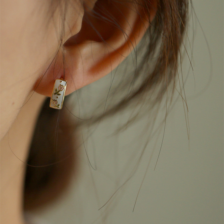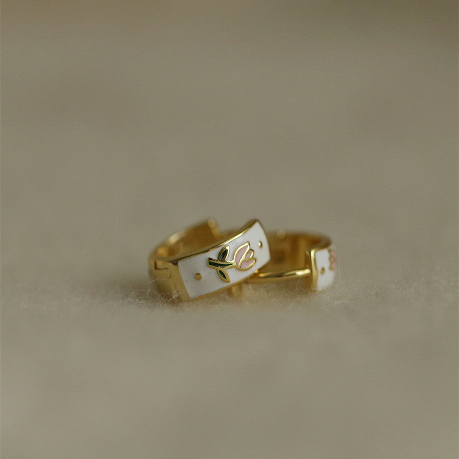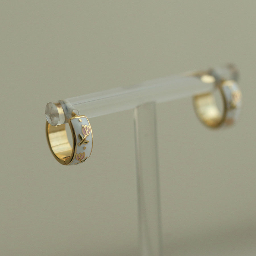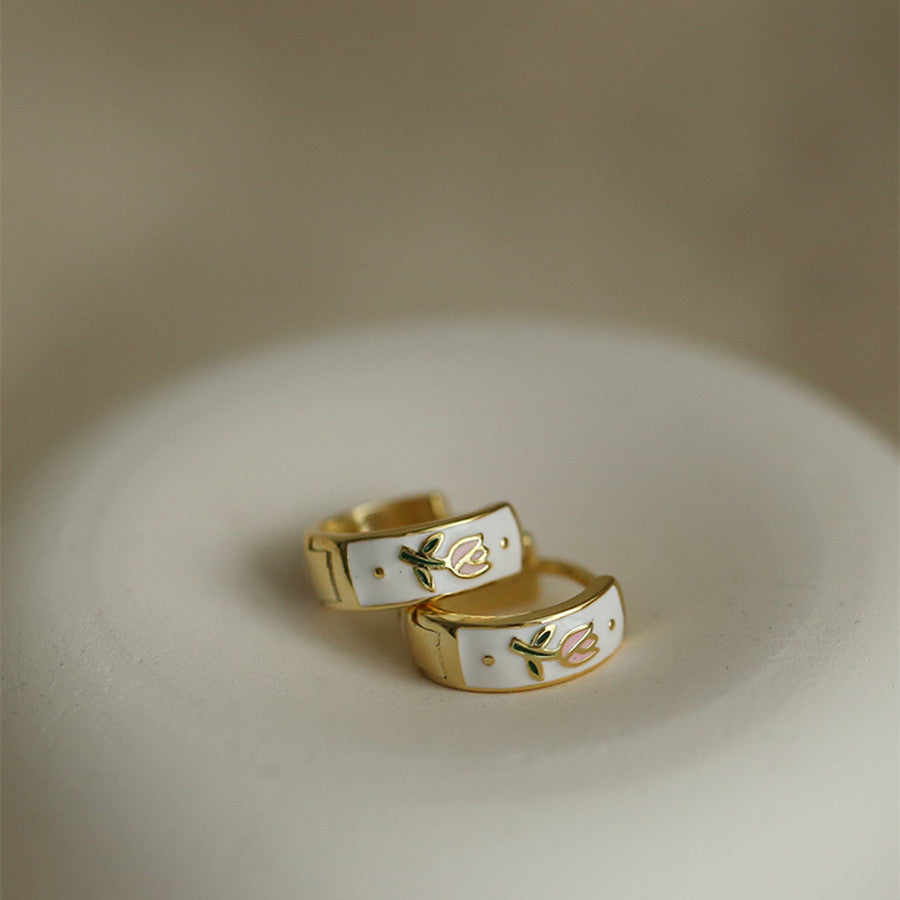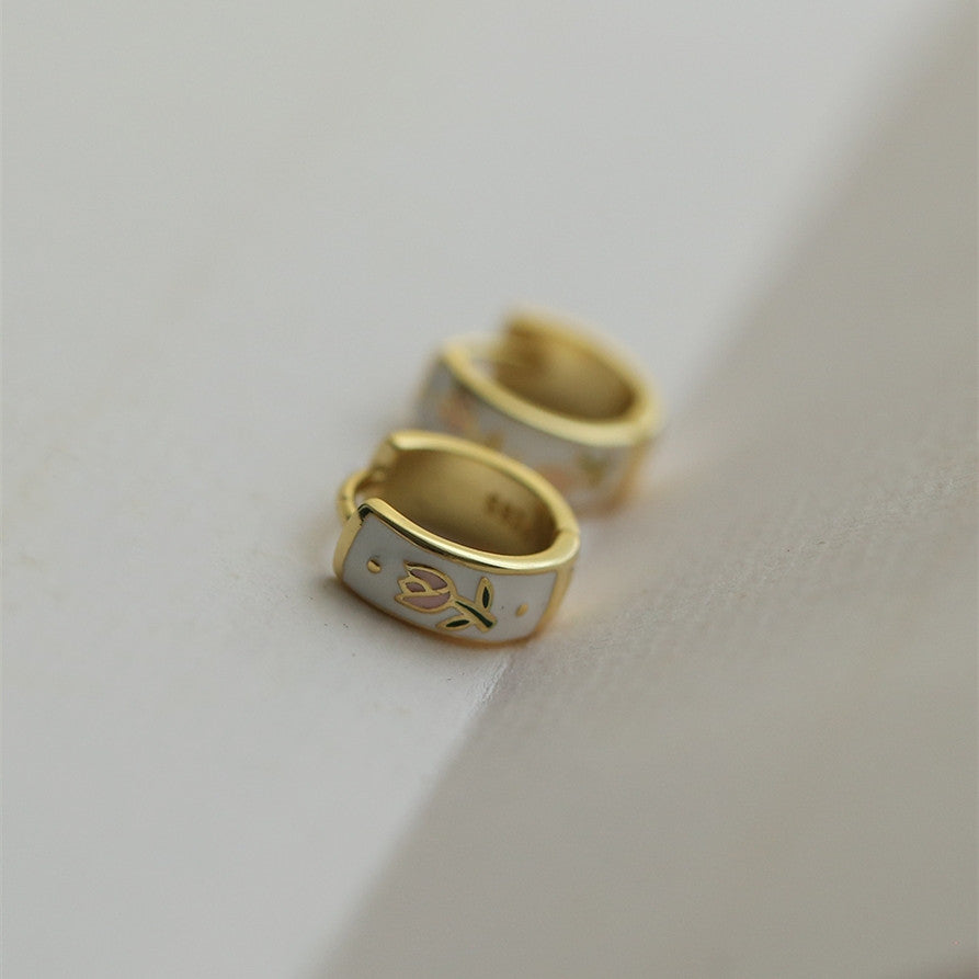Vintage Enamel Colorful Dopamine Tulip Earrings 925 Sterling Silver