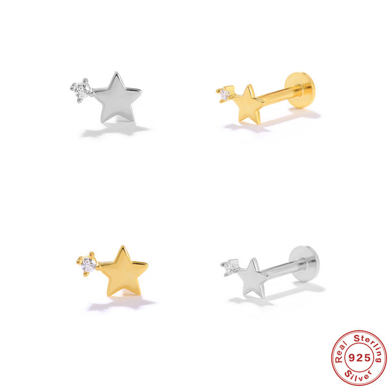 S925 Sterling Silver Five-Pointed Star Diamond Stud Earrings