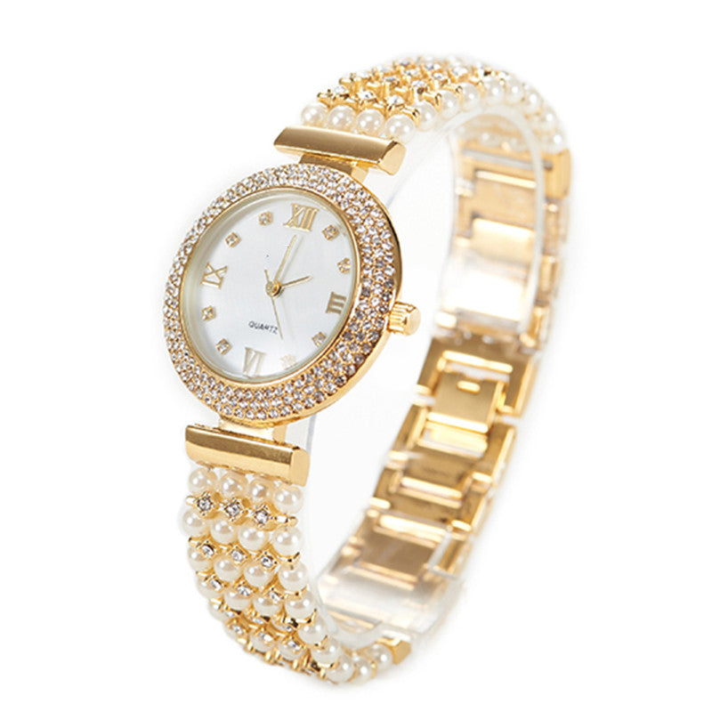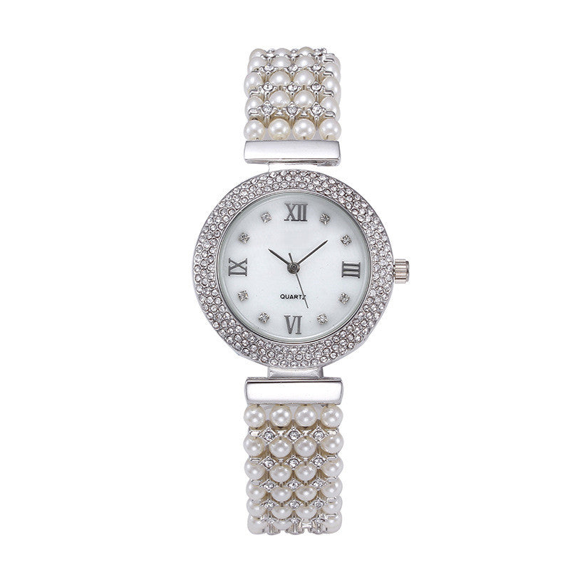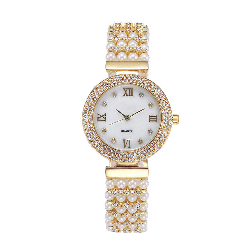 Women's Fashion Pearl Quartz Watch With Diamonds