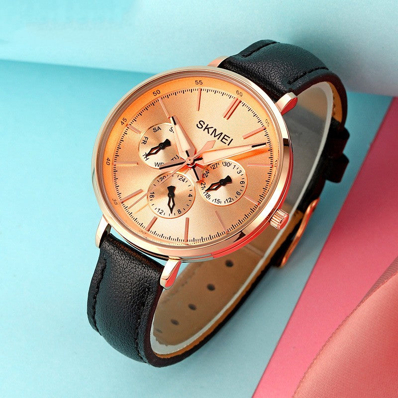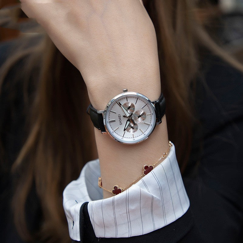 Fashion Six-Pin Genuine Leather Women's Retro Round Quartz Watch