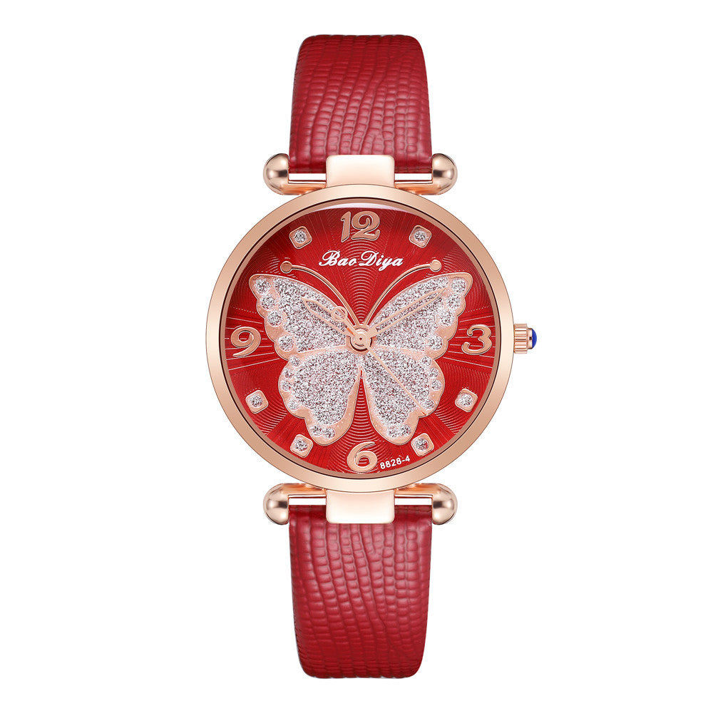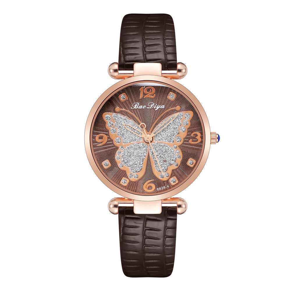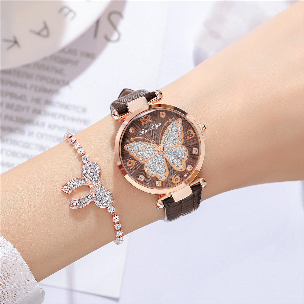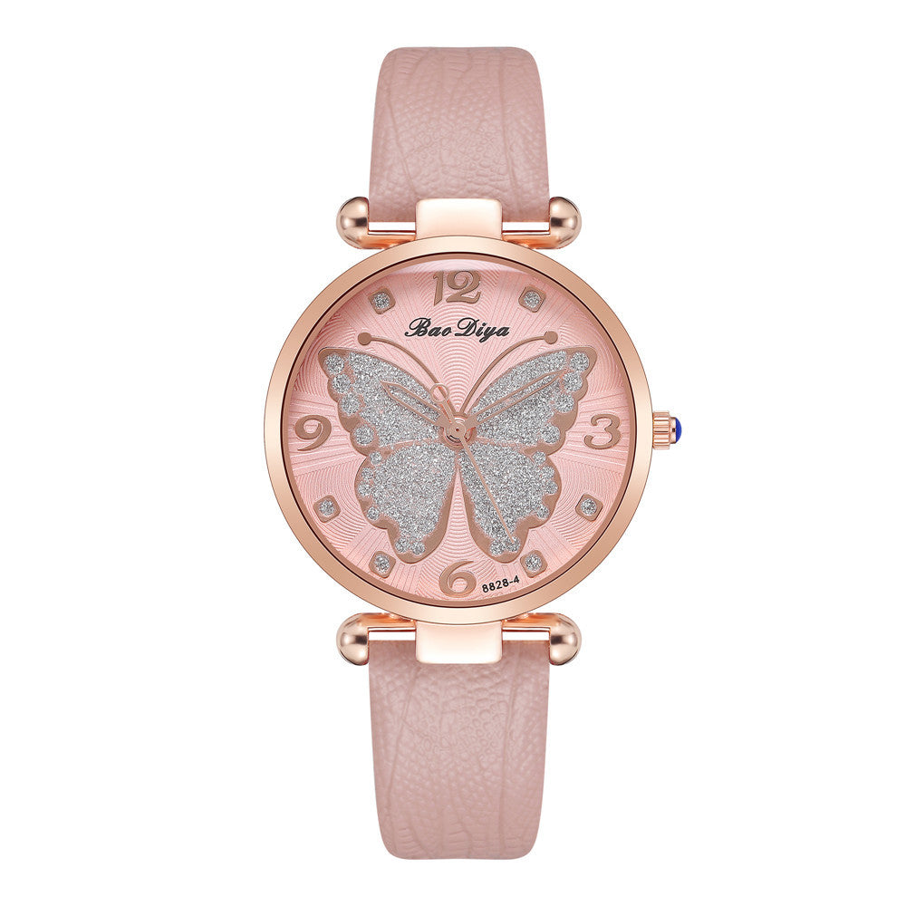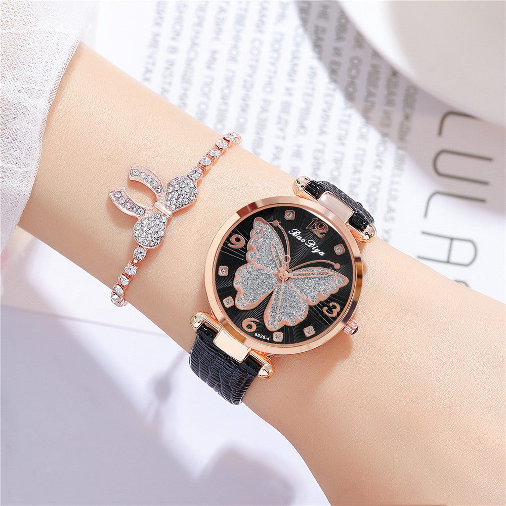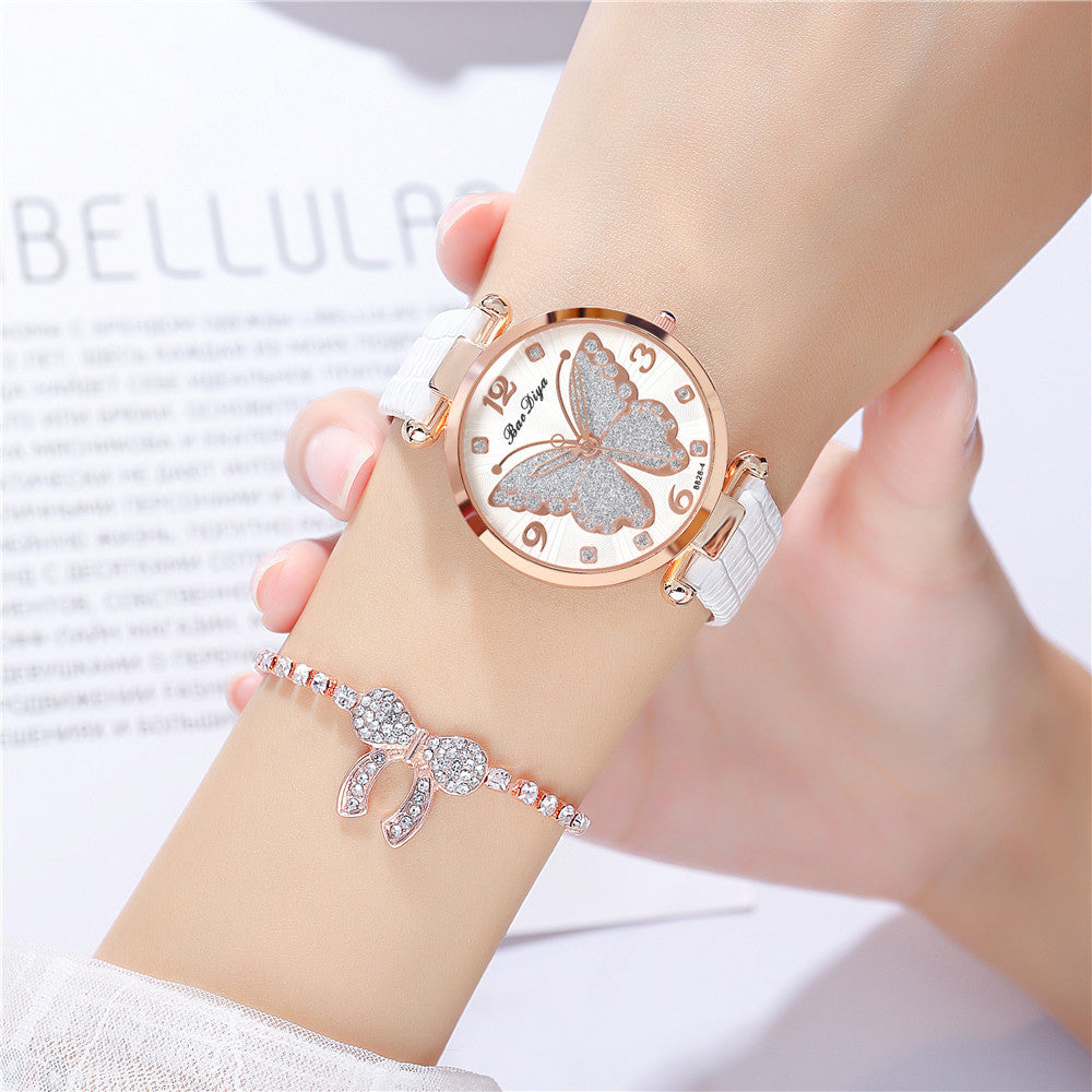 Glitter Butterfly Pattern Quartz Ladies Casual Belt Watch