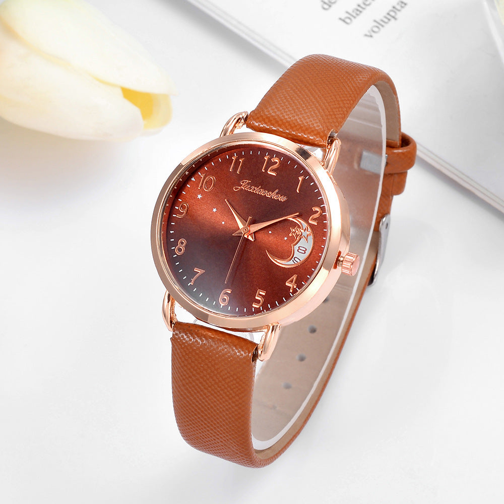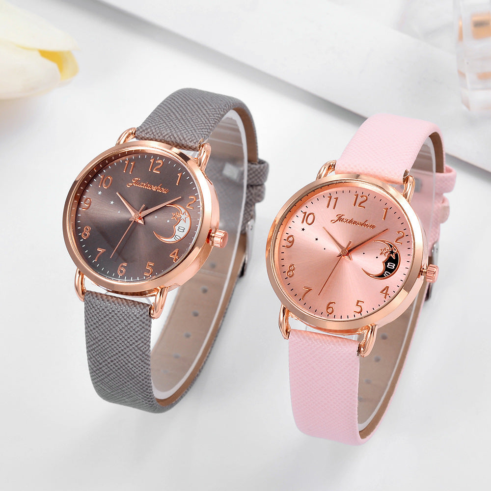 Ladies Personality Quartz Watch Pu With Pattern Dial With Calendar