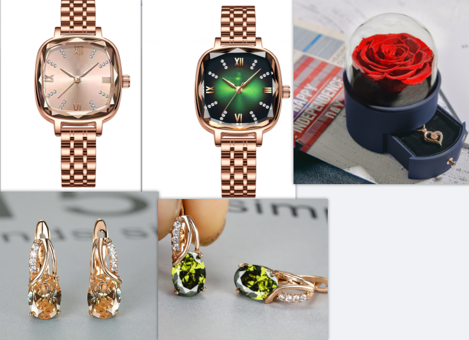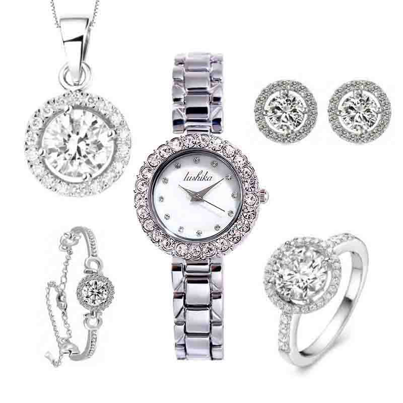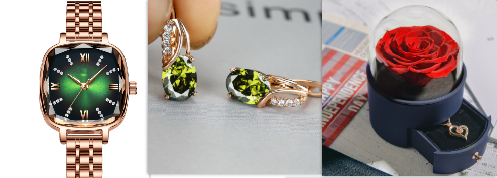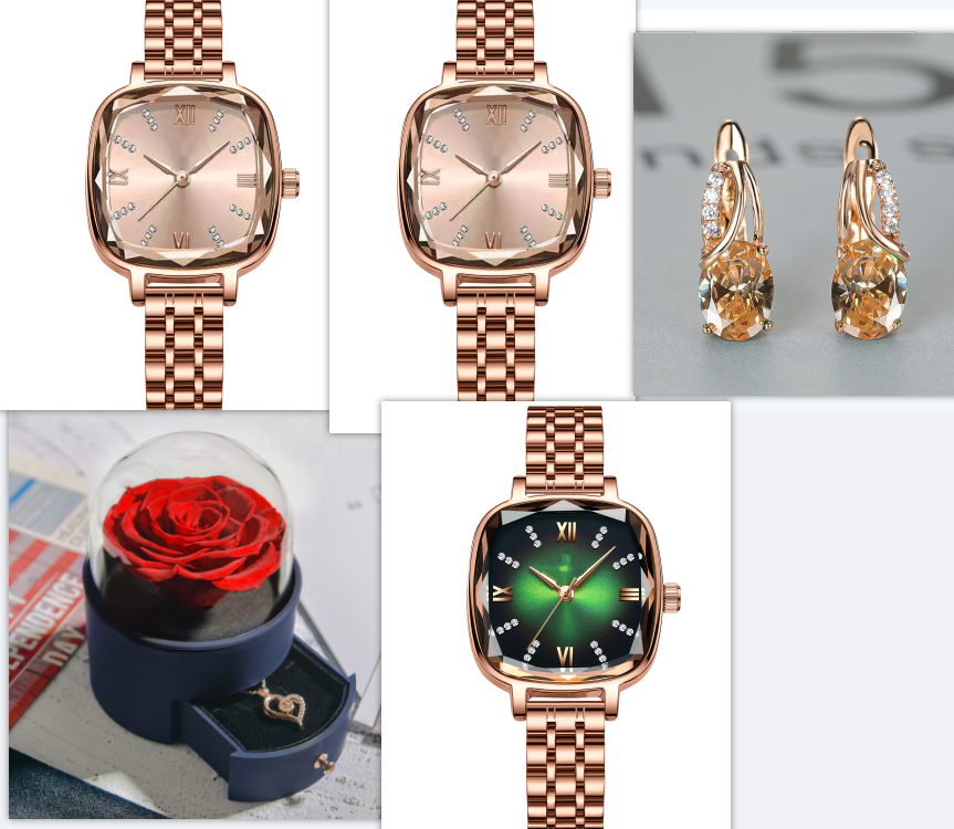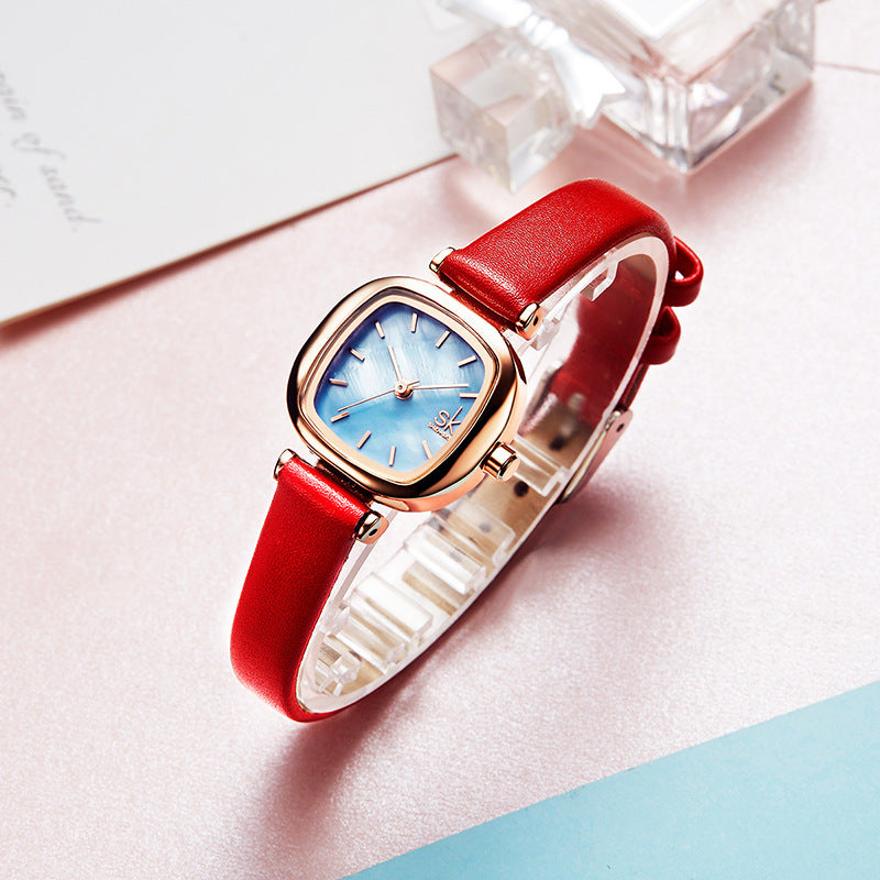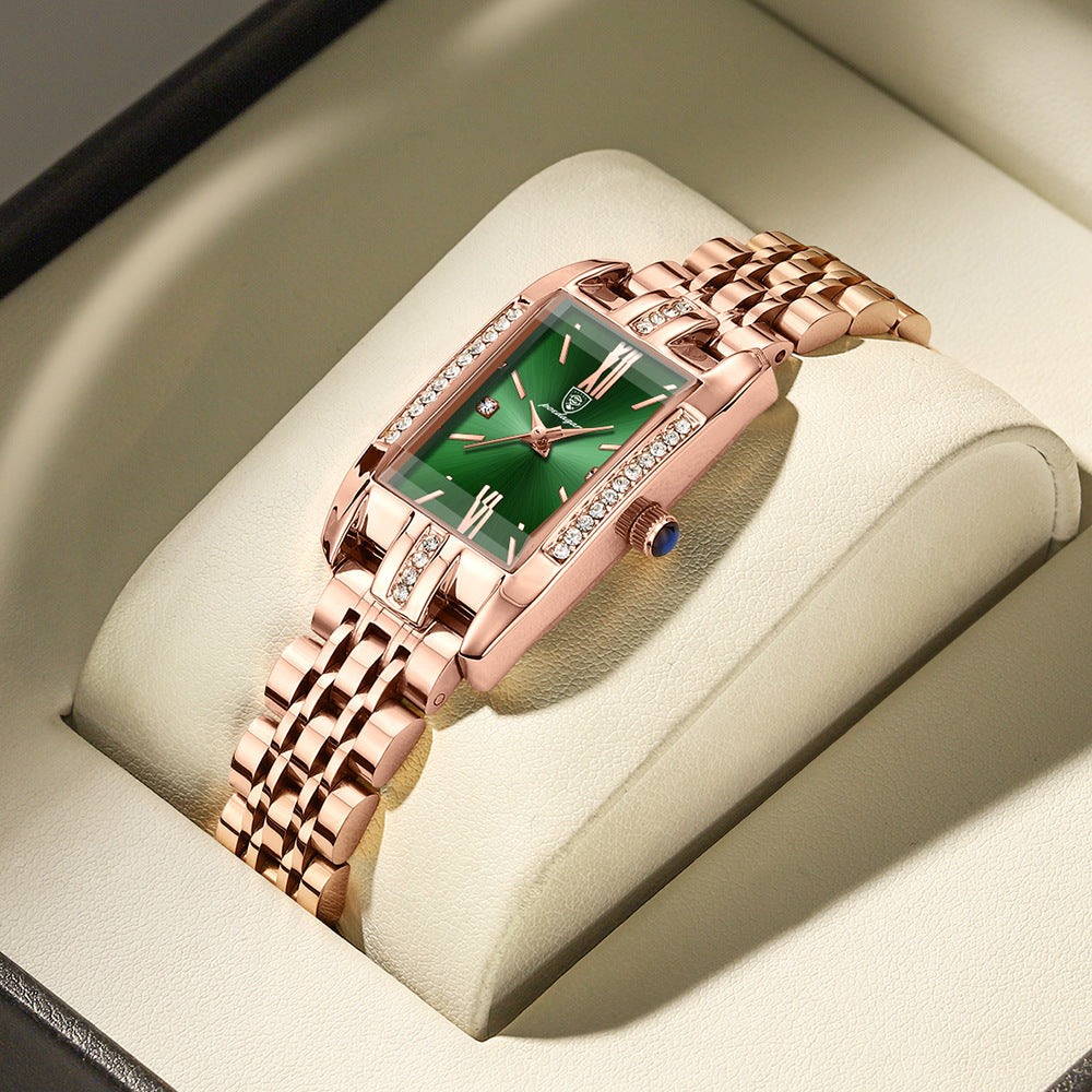 Women's Exquisite Small Green Watch Set Gift Box Square