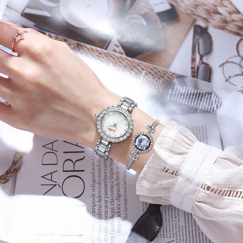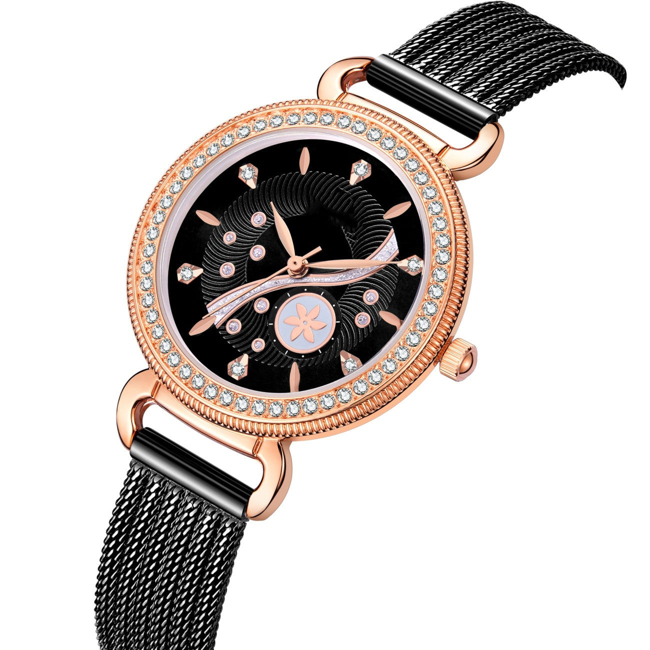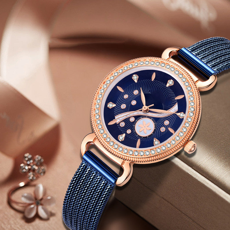 Women's Fashion Diamond-Set Stainless Steel Mesh Band Waterproof Watch