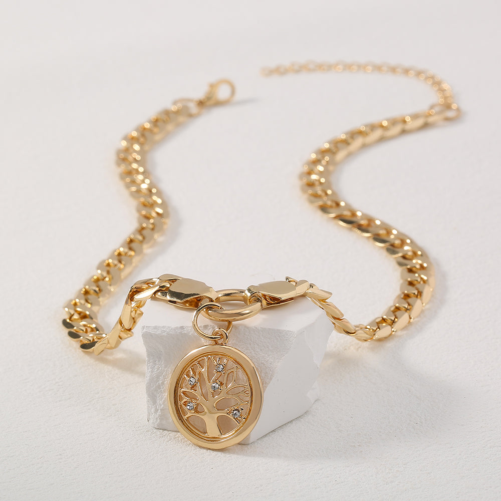 This  necklace is a stunning accessory that will make you look like a celebrity. The necklace features a tree of life pendant that symbolizes growth and harmony. The pendant is attached to a multi-layer chain that is double-layered and round. The chain has a street hip-hop style that is popular in Europe and America. The necklace is also a great choice for couples, as it can show your personality and match with your partner. The necklace is Instagram-worthy, as it can enhance your photos and attract more likes and followers. Order yours today and rock the celebrity look!