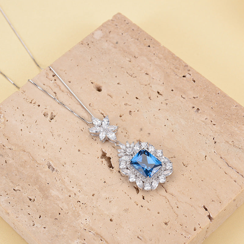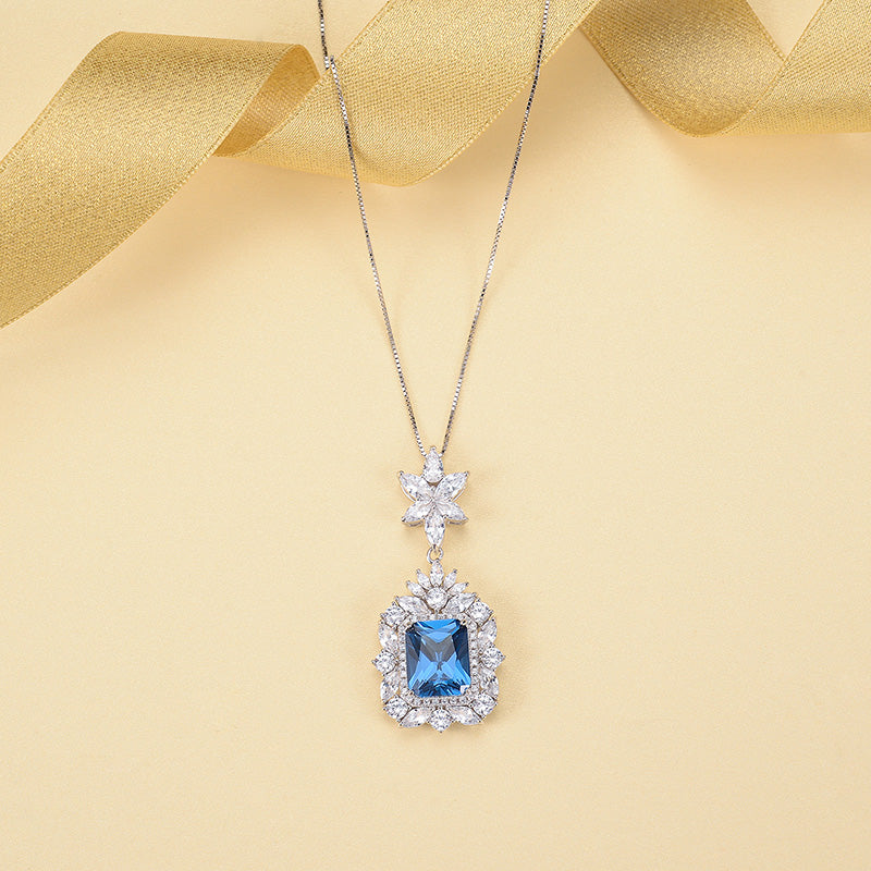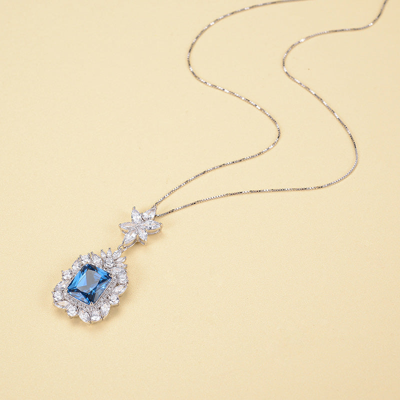 Material: 925 silver with platinum plated + UV protection + marine blue color zirconium