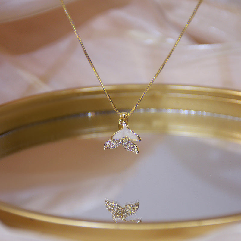 Short Necklace With Zircon And Real Gold Temperament Fishtail Net Celebrity Short Necklace
