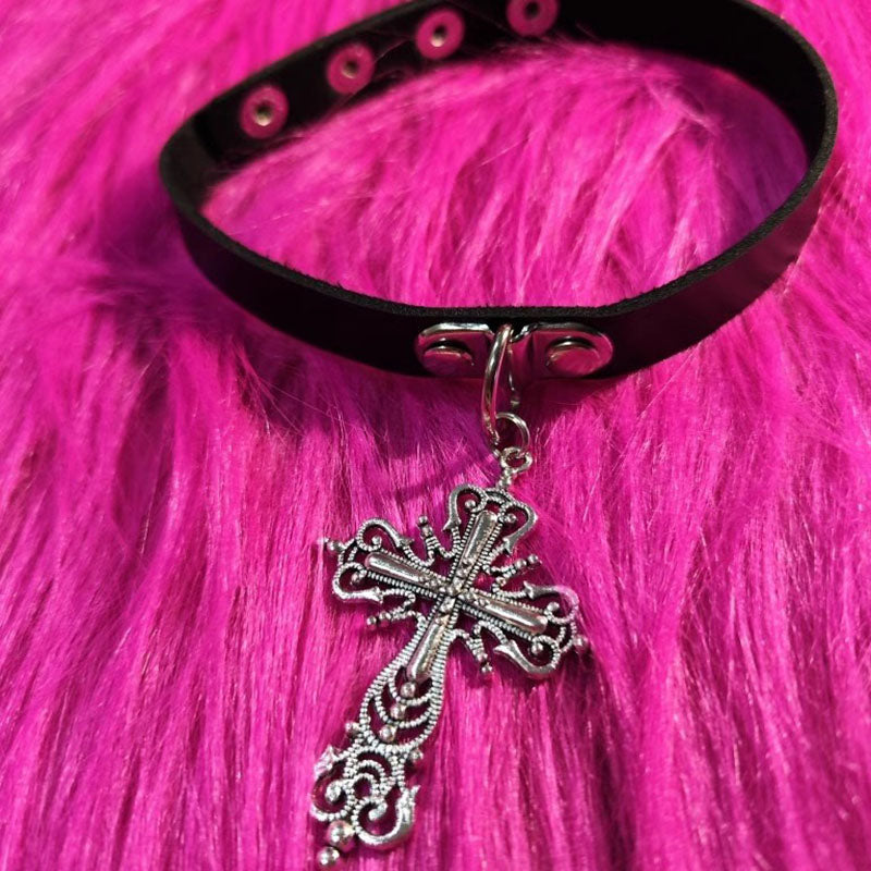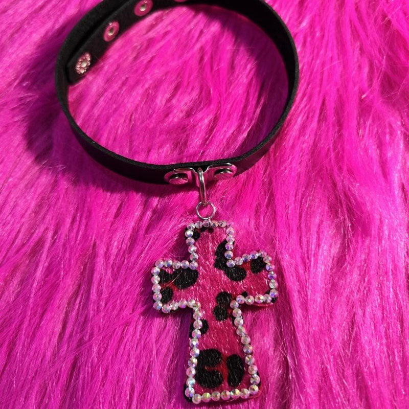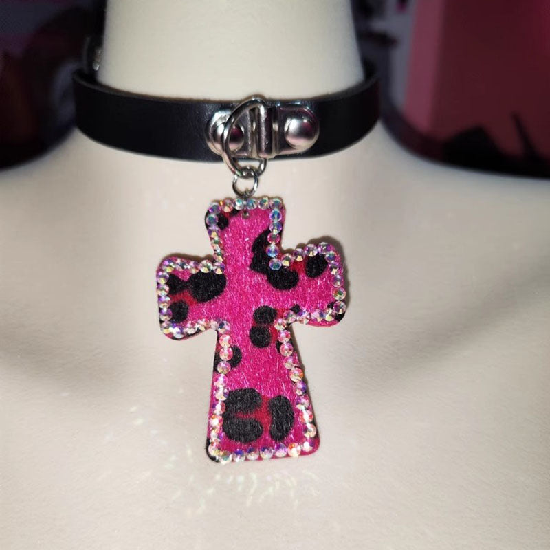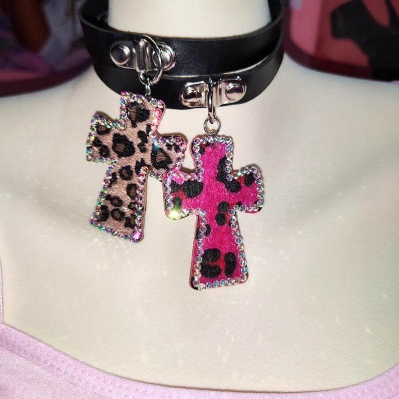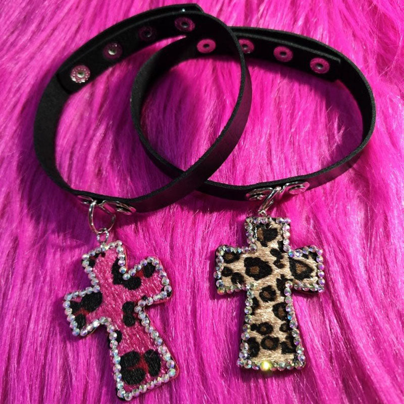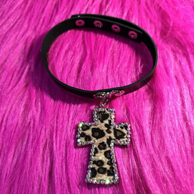 Handmade Ethnic Style Hot Girl Leopard Diamond Cross Necklace Collar