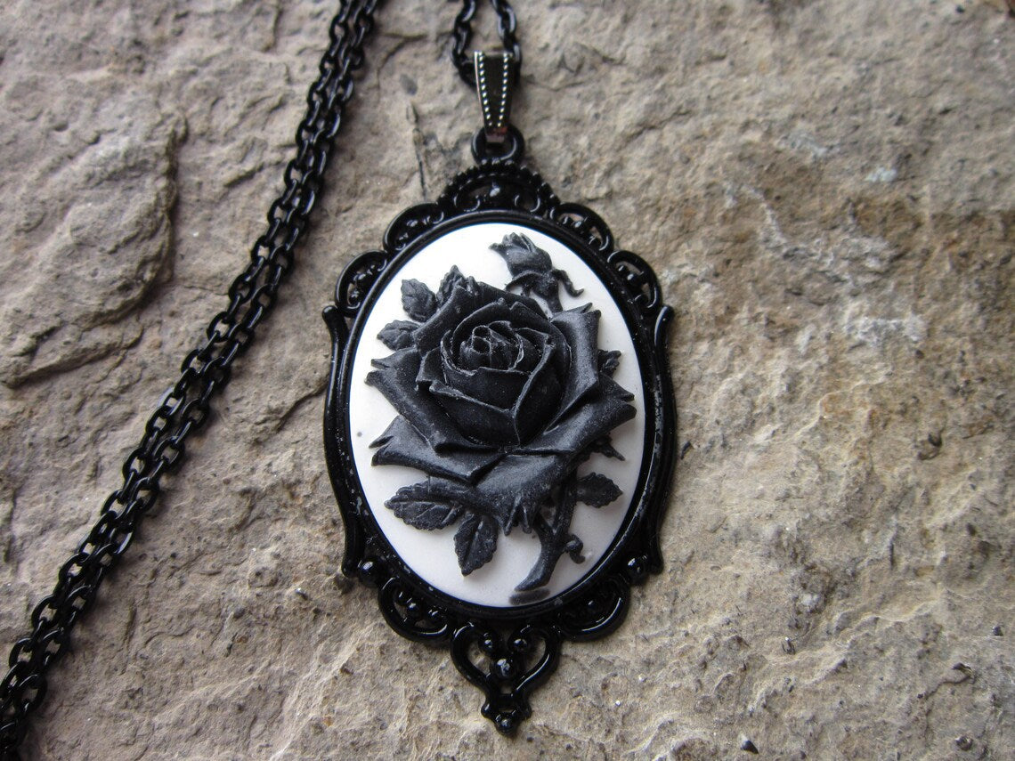 Victoria Black Rose With White Or White Rose With Black Necklace