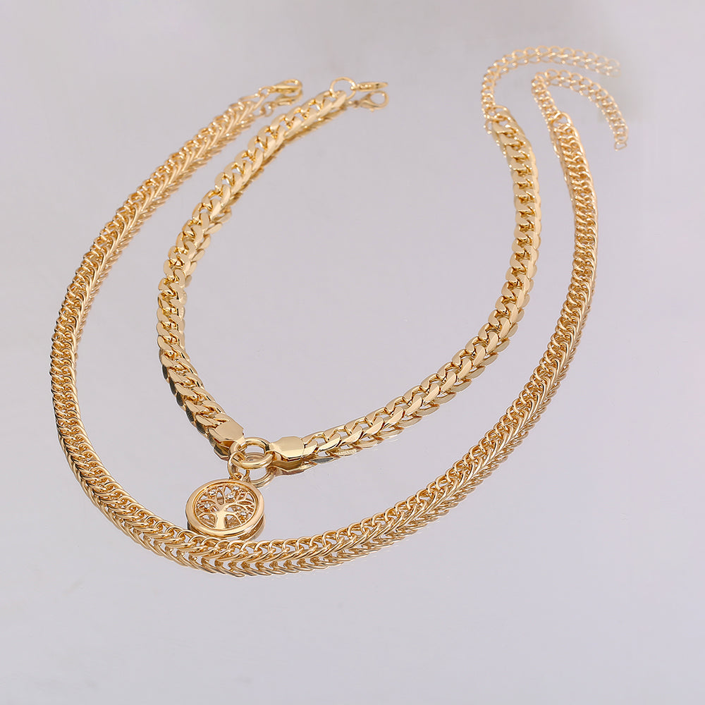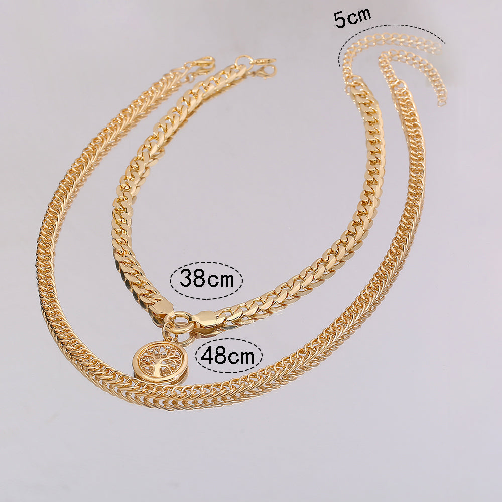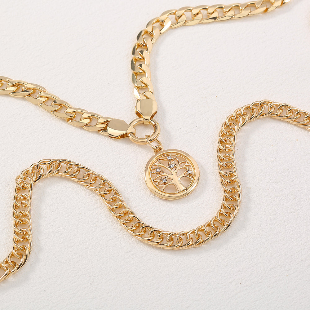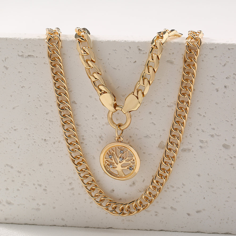 Celebrity Hip Hop Copper Necklace With Double-Layer Chain And Tree Of Life Pendant For Couples