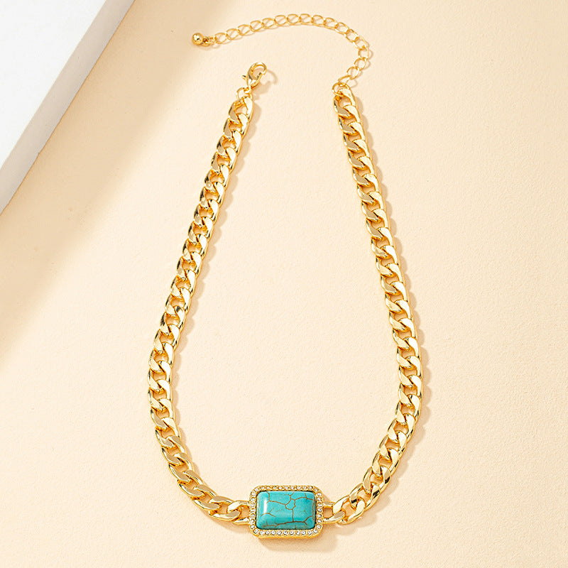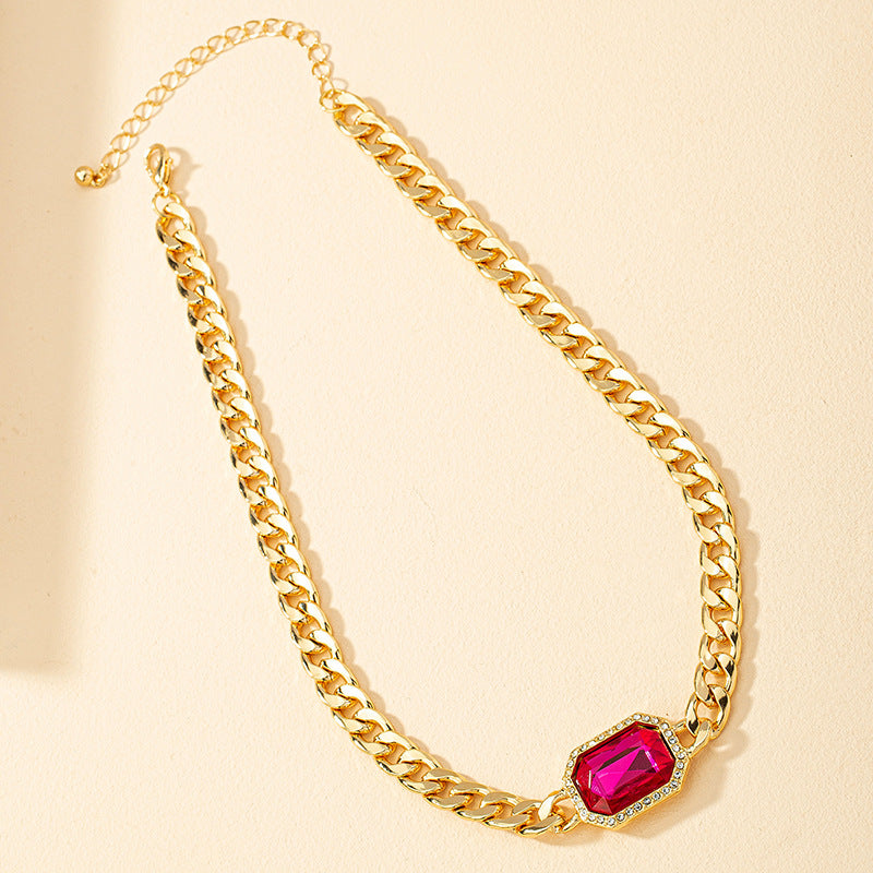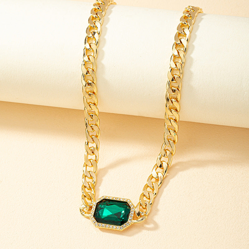 Retro Emerald Necklace Female Temperament Trend Street Shot Internet Celebrity Same Style Clavicle Chain