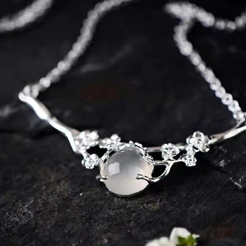 Plated 925 Inlaid Moonlight White Chalcedony Moon Shadow Cold Plum Necklace