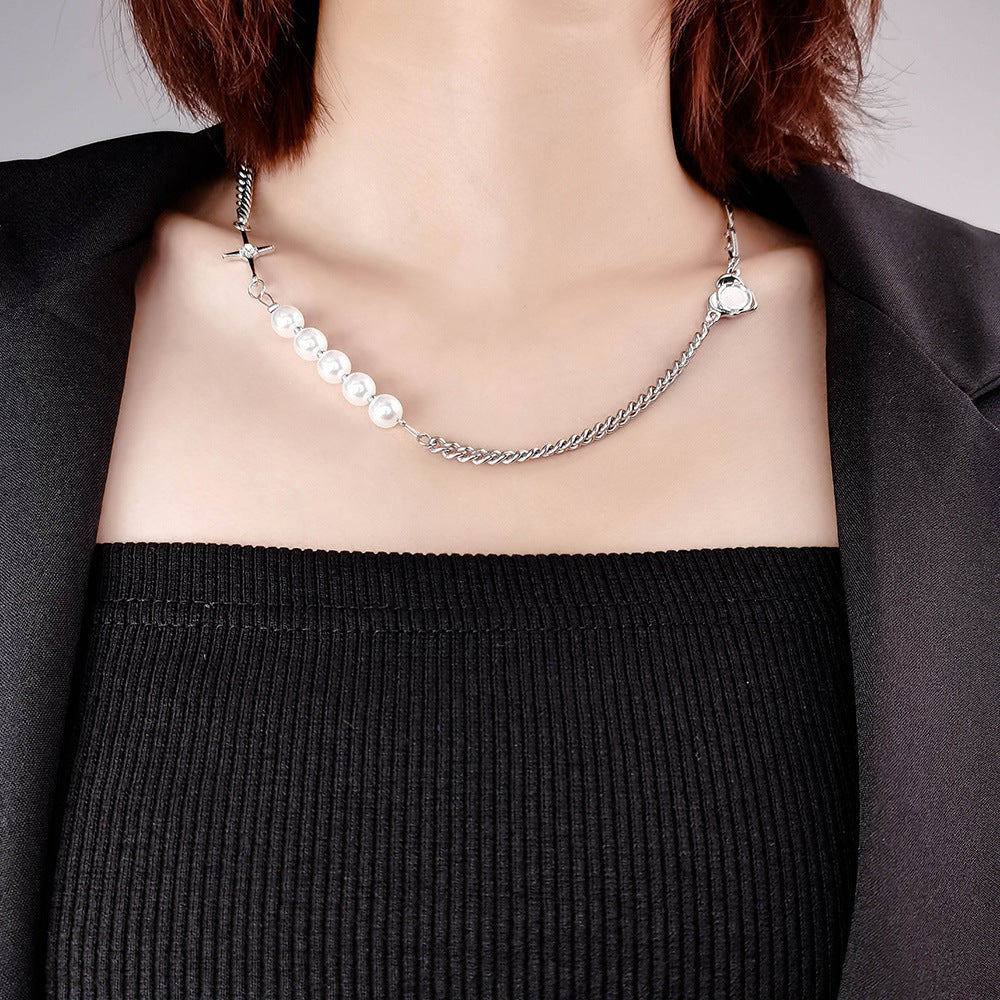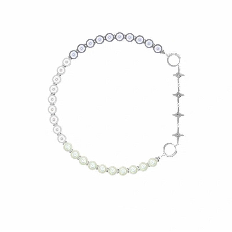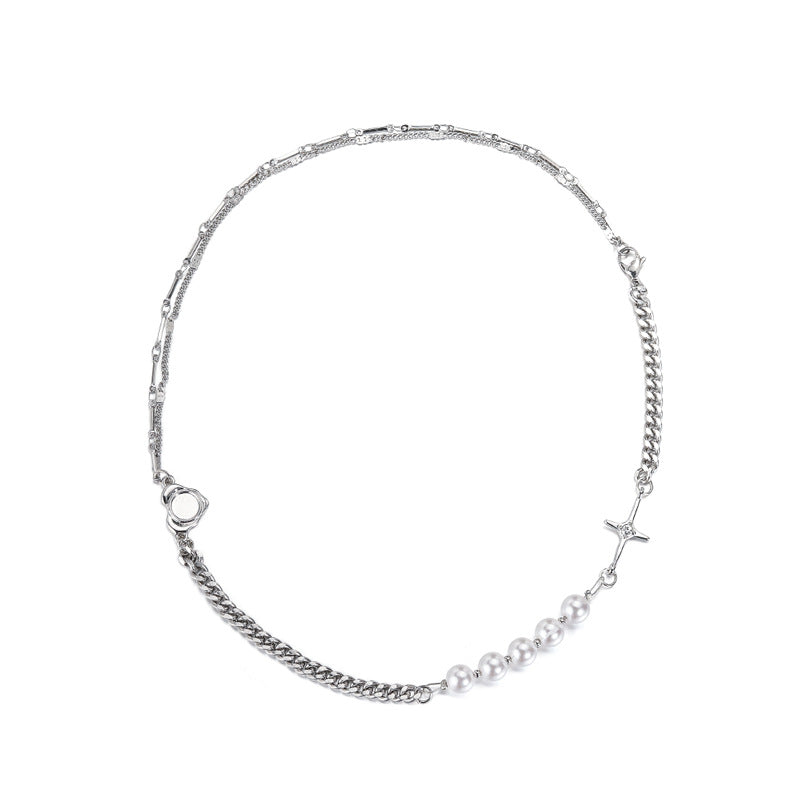 Reflective Pearl Necklace Asymmetric Stitching Chain