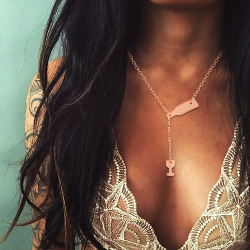 Fashion Red Wine Bottle Wine Glass Necklace Personalized Wine Glass Accessories Pendant