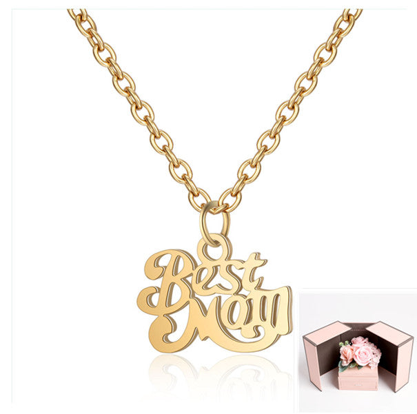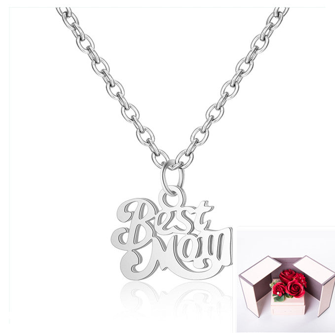 Stainless Steel Best Mom Charm Necklace Family Mother Pendant