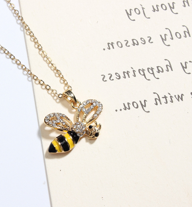 Summer Jewelry Necklace Lady Cartoon Cute Drop Oil Studded Bee Pendant
