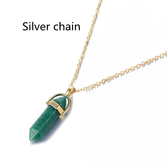 Hexagon Pillar Necklace Pendant Crystal Quartz Stone Pendant