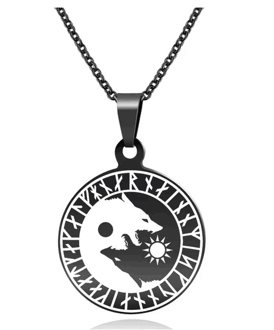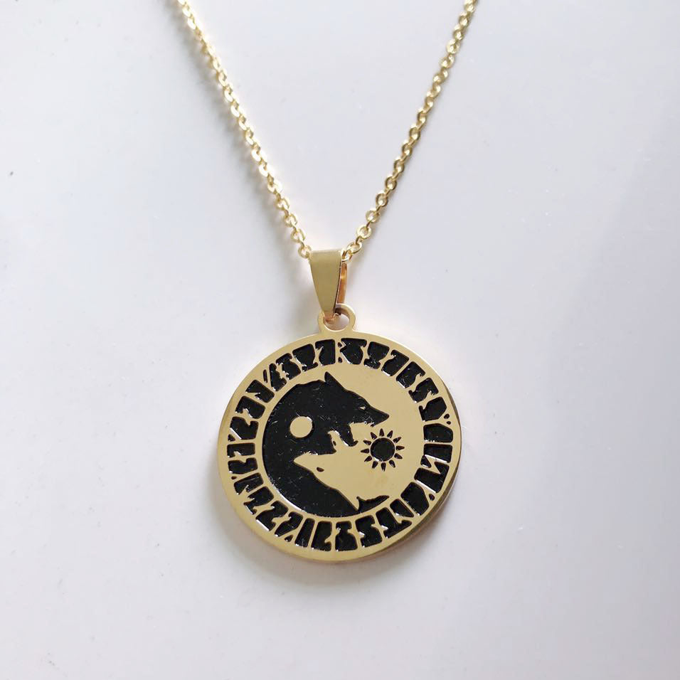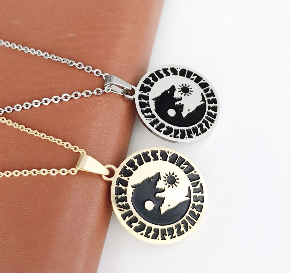 Wolf Head Sun Moon Necklace Titanium Steel Viking Pendant