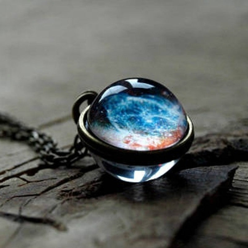 Cosmic Planet Time Gemstone Necklace Solar System Double Neck Glass Star Necklace