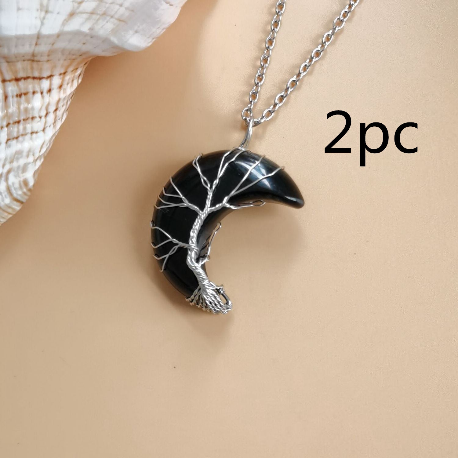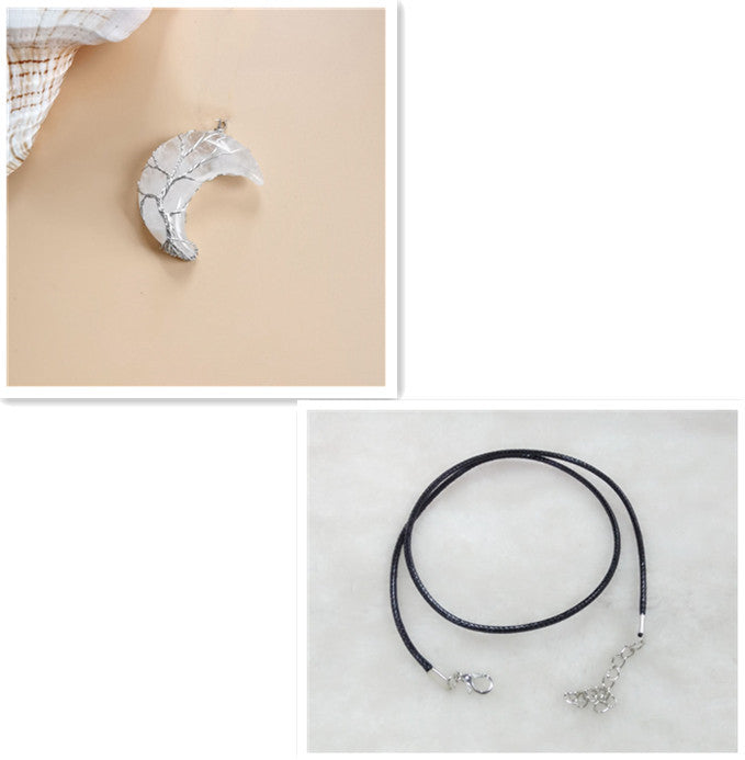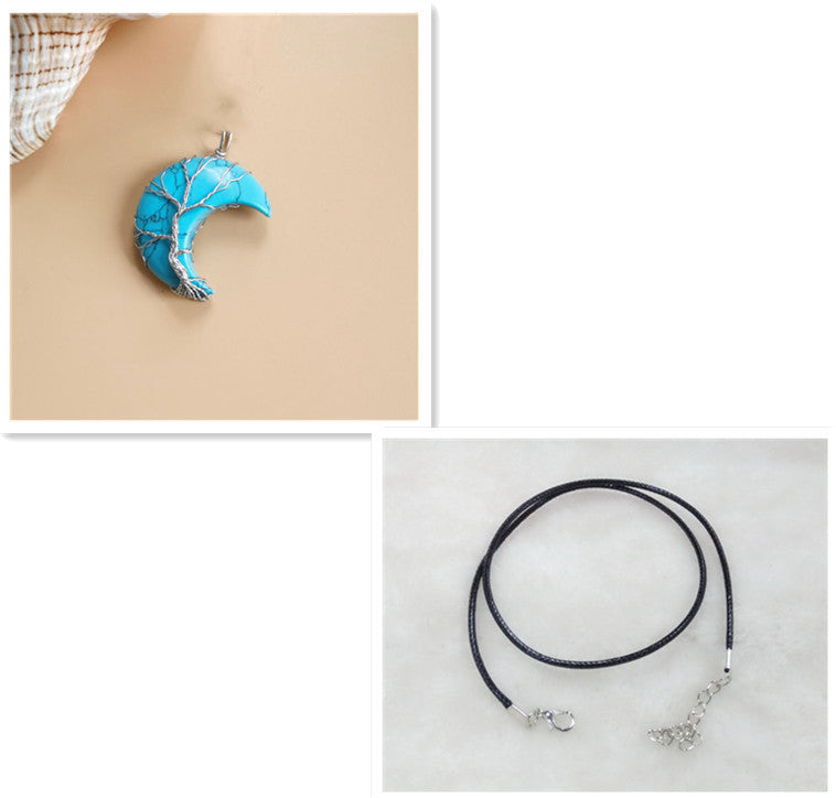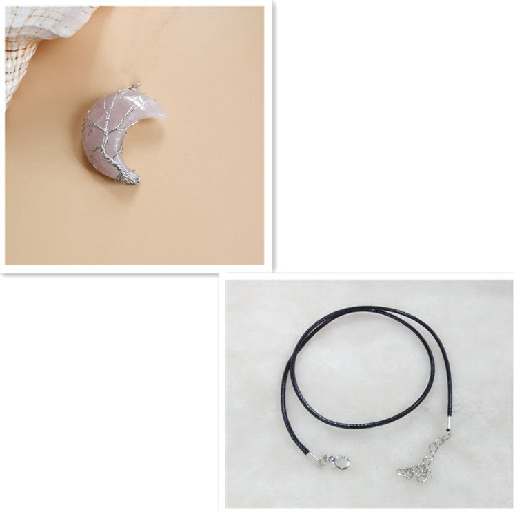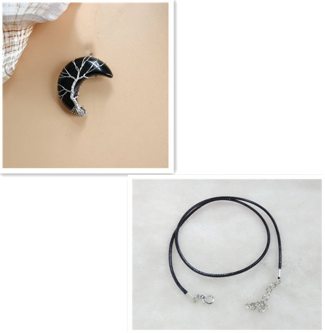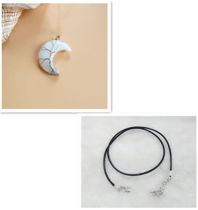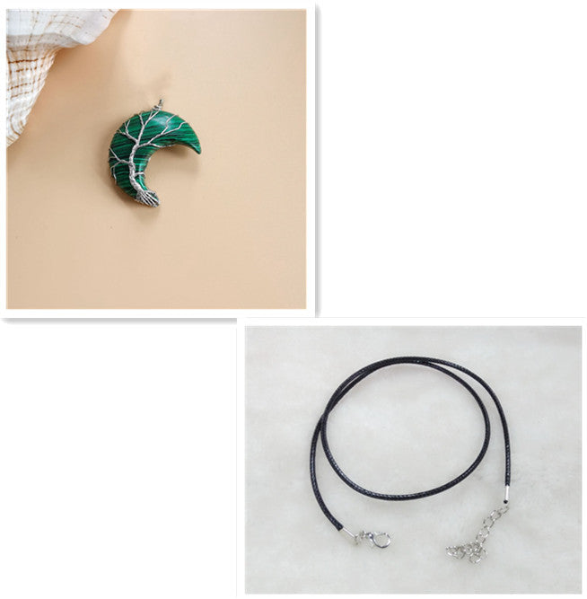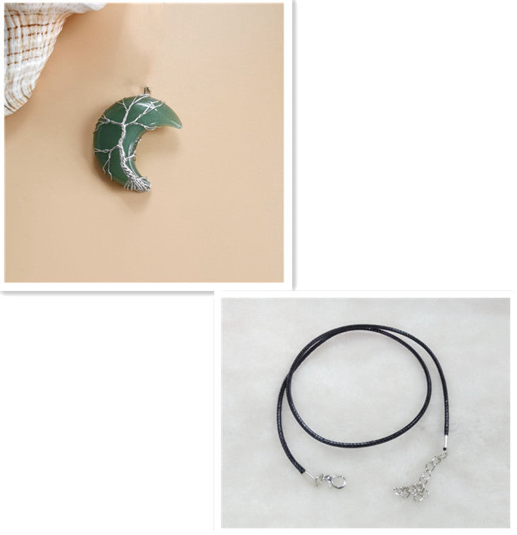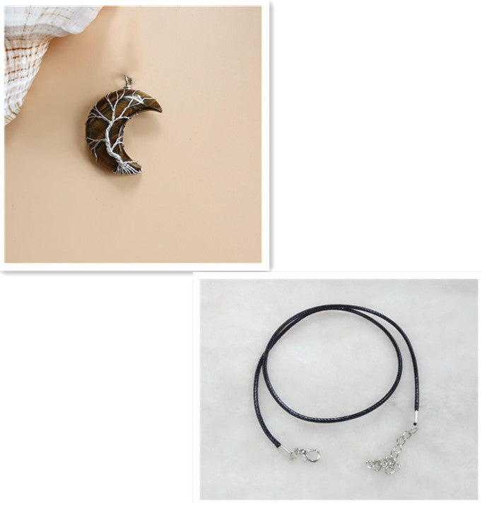 Cross-Border Hot Handmade Necklace Jewelry Moon Natural Crystal Stone Tree Of Life Jewelry Pendant Necklace Accessories
