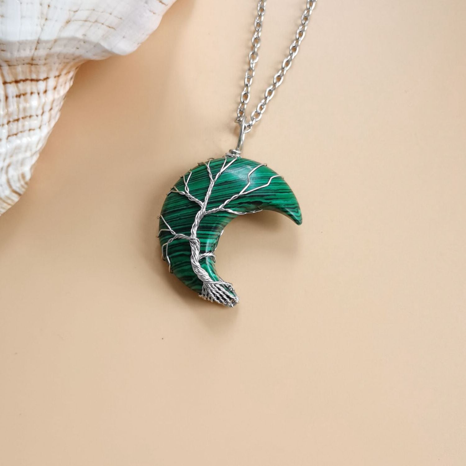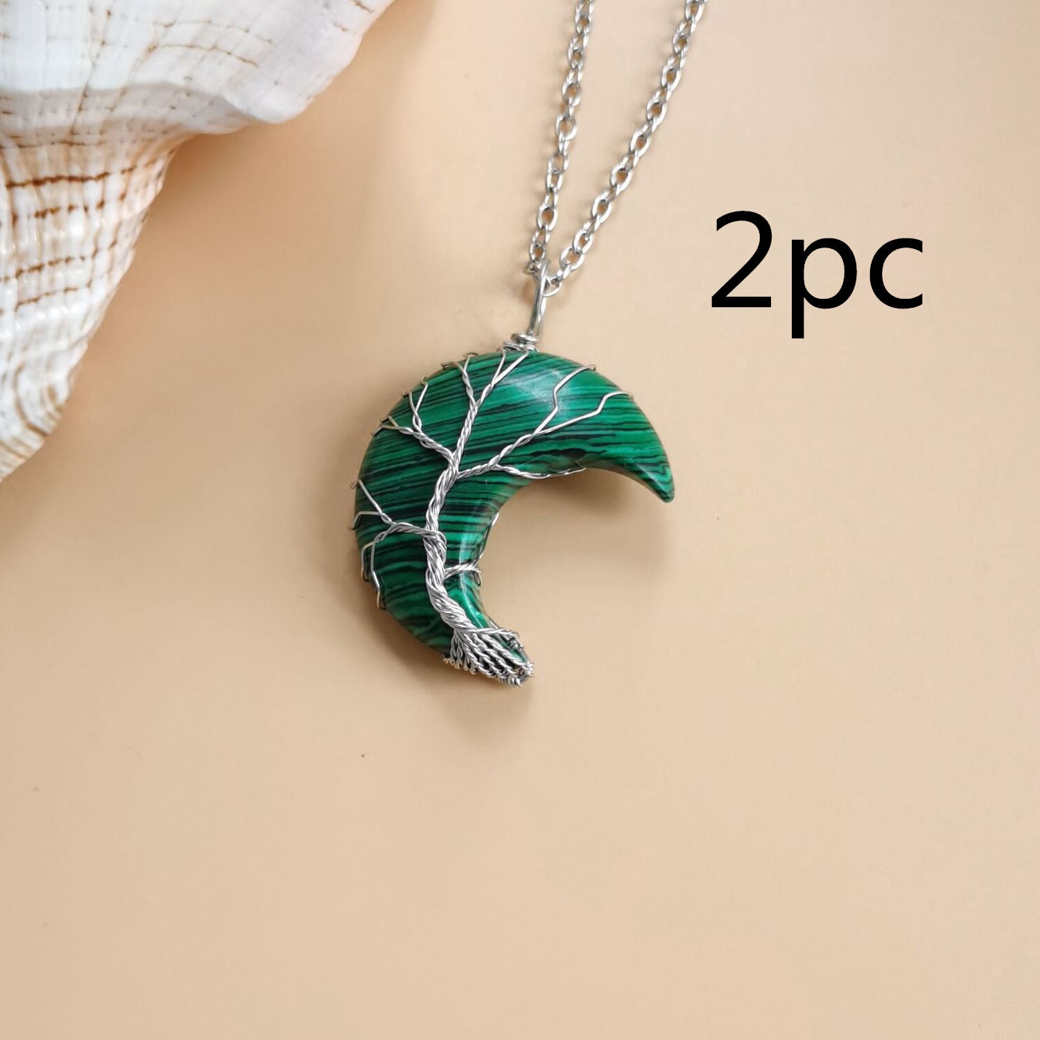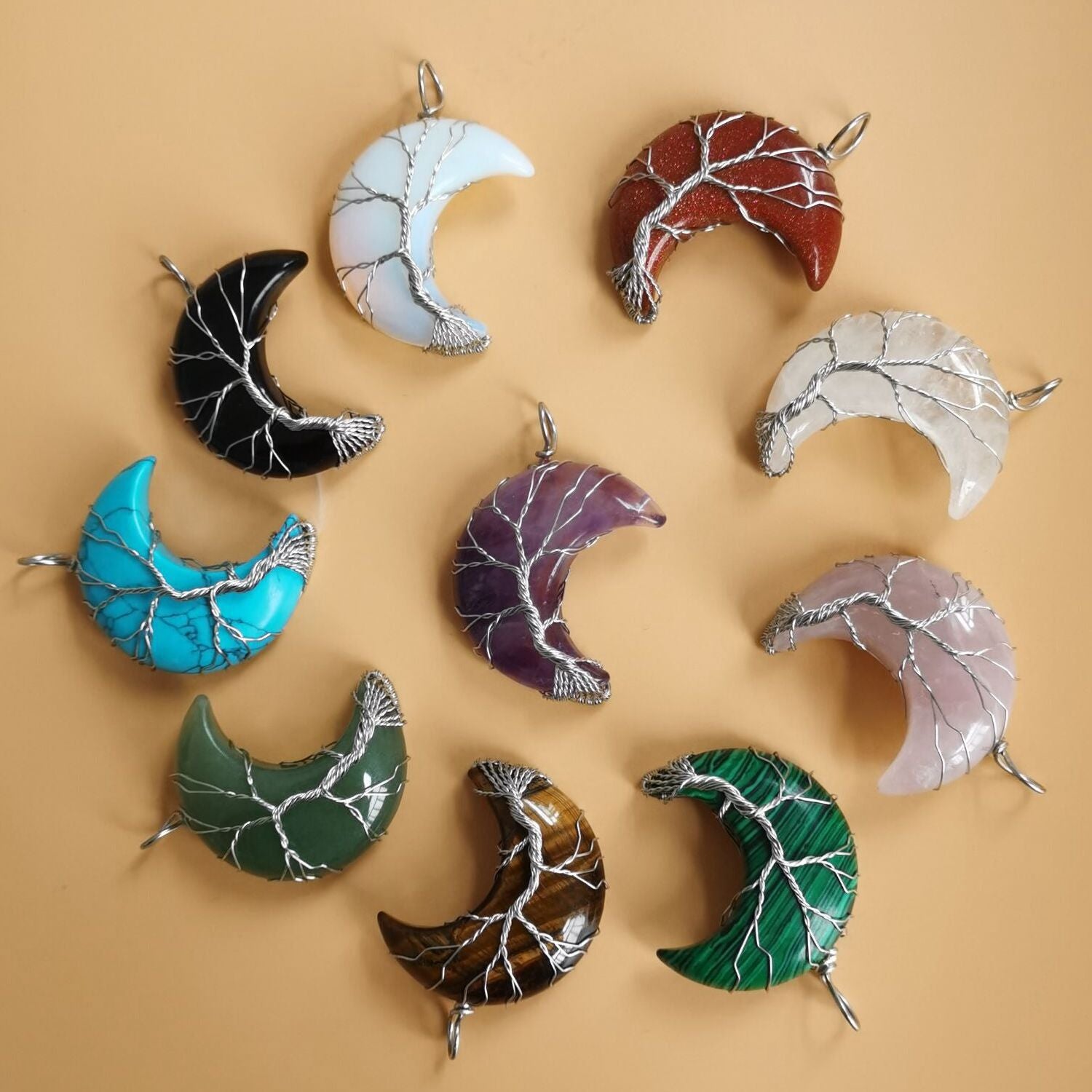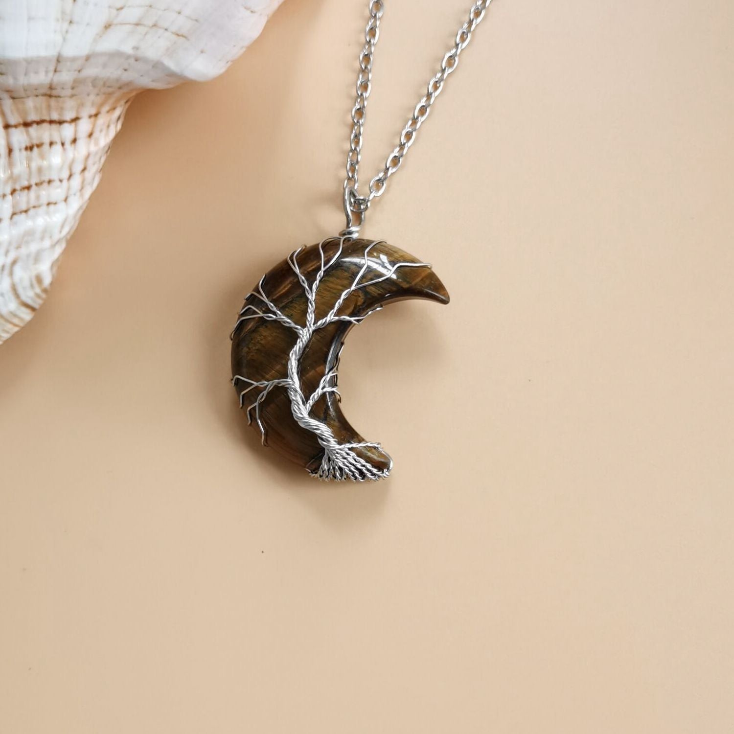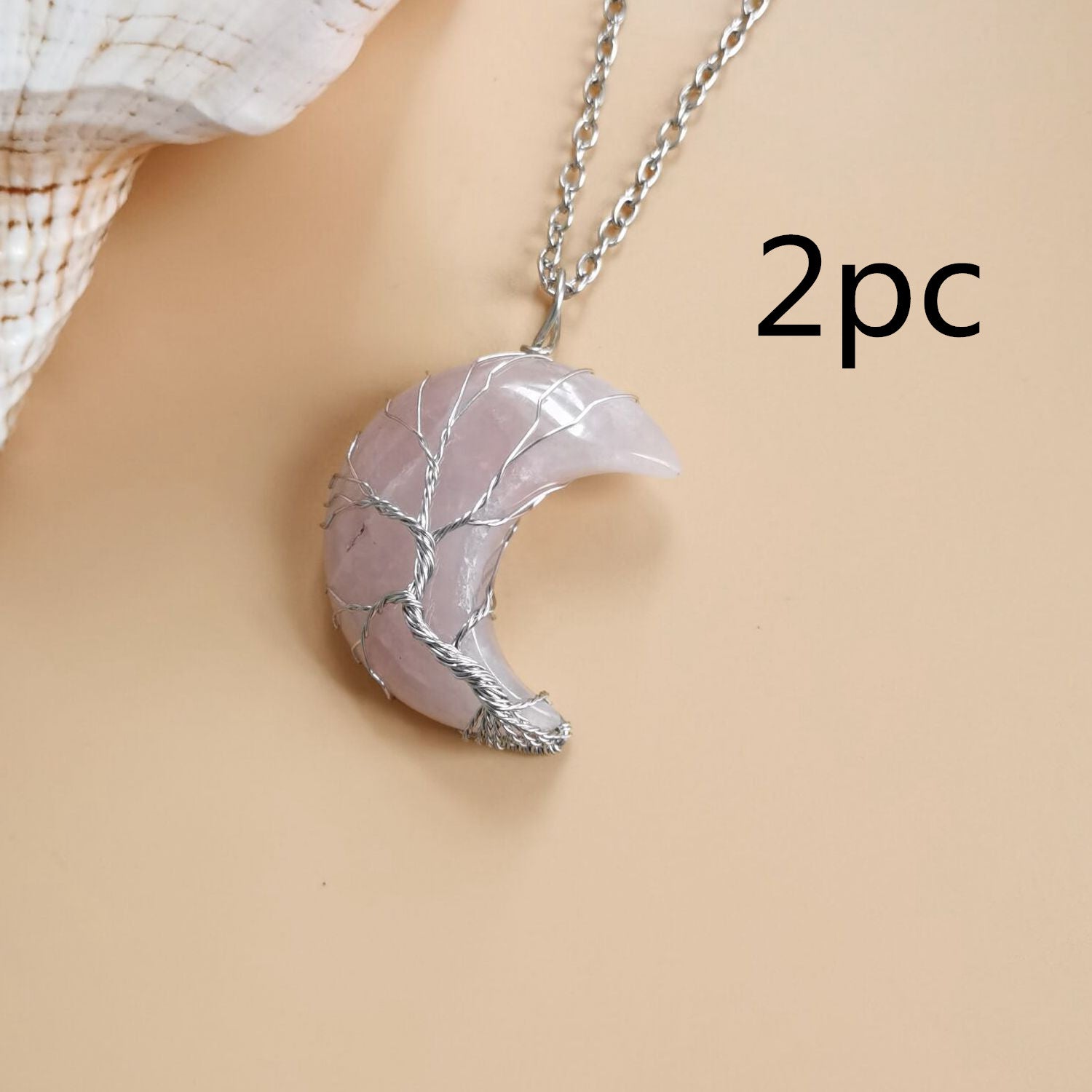 Cross-Border Hot Handmade Necklace Jewelry Moon Natural Crystal Stone Tree Of Life Jewelry Pendant Necklace Accessories