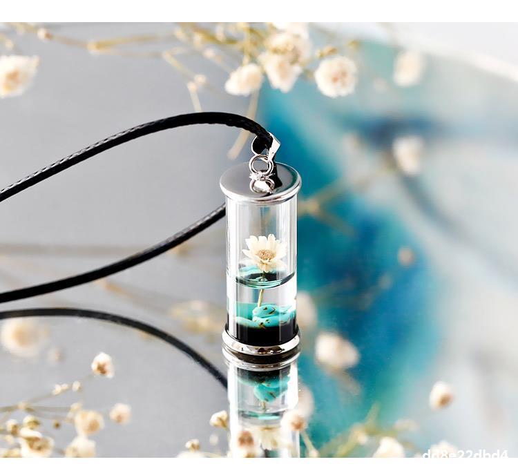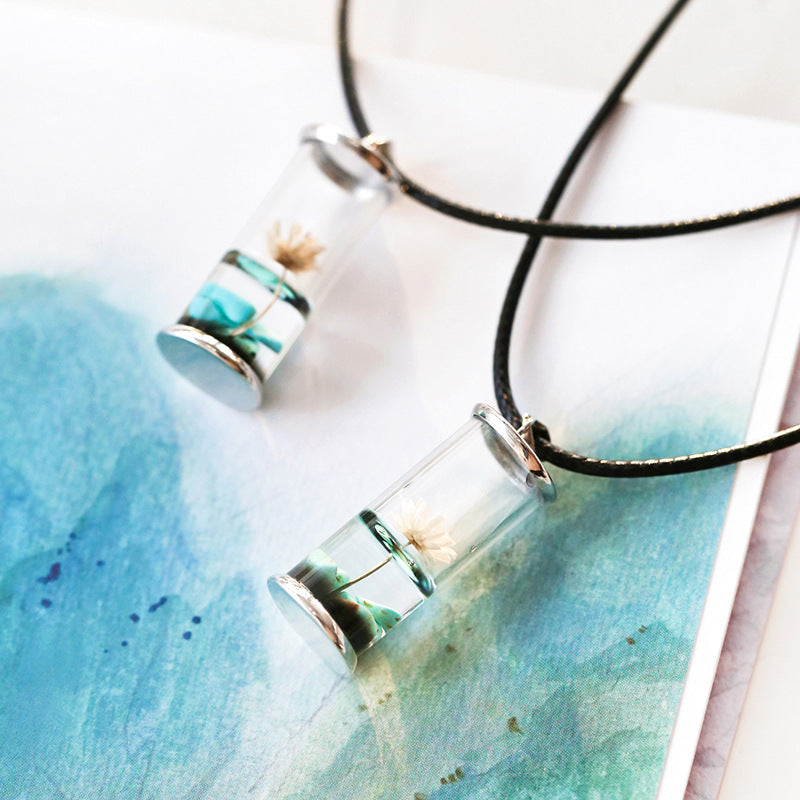 Dried Flowers Glass Bottle Resin Time Drifting Bottle Necklace